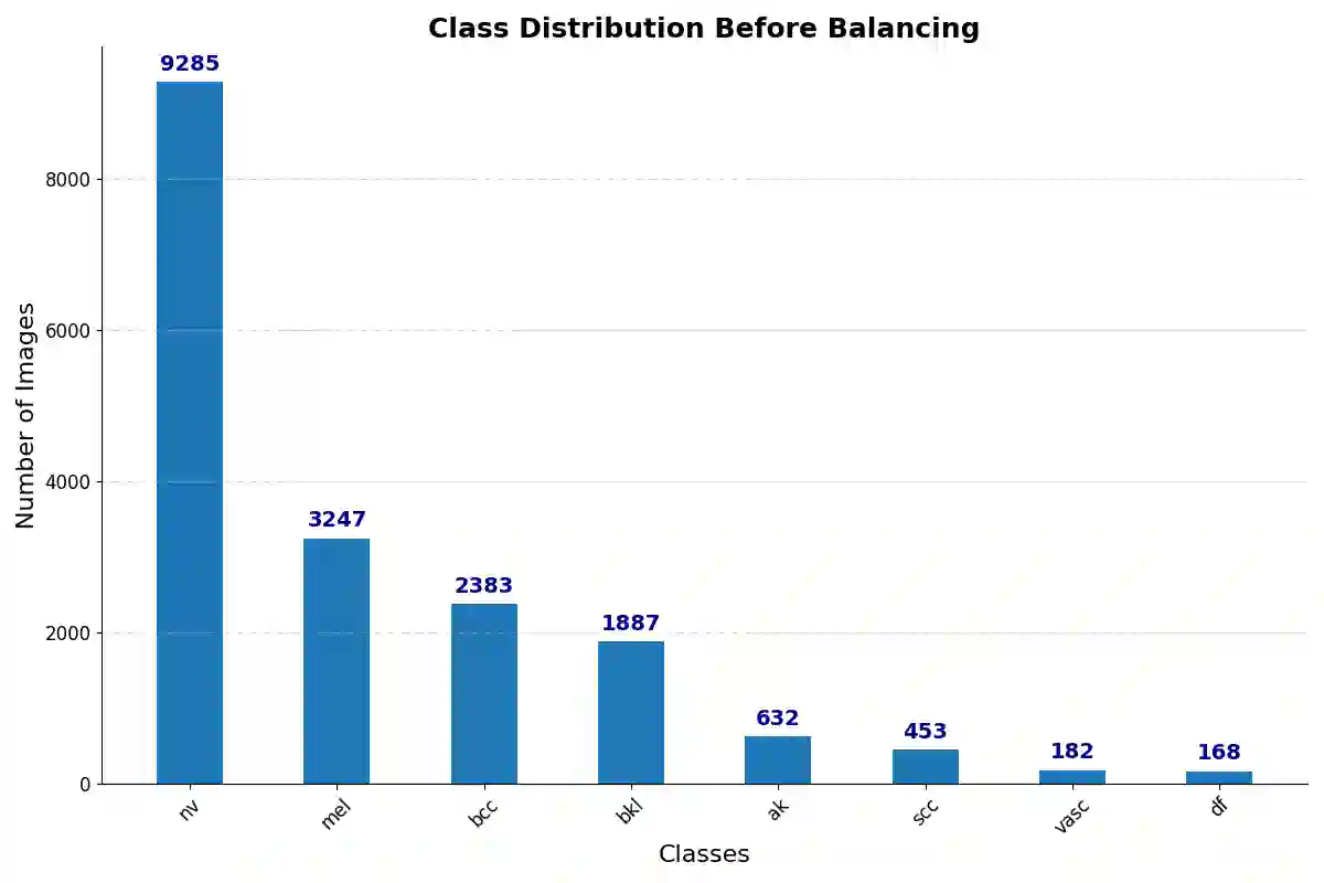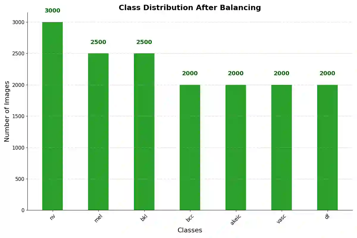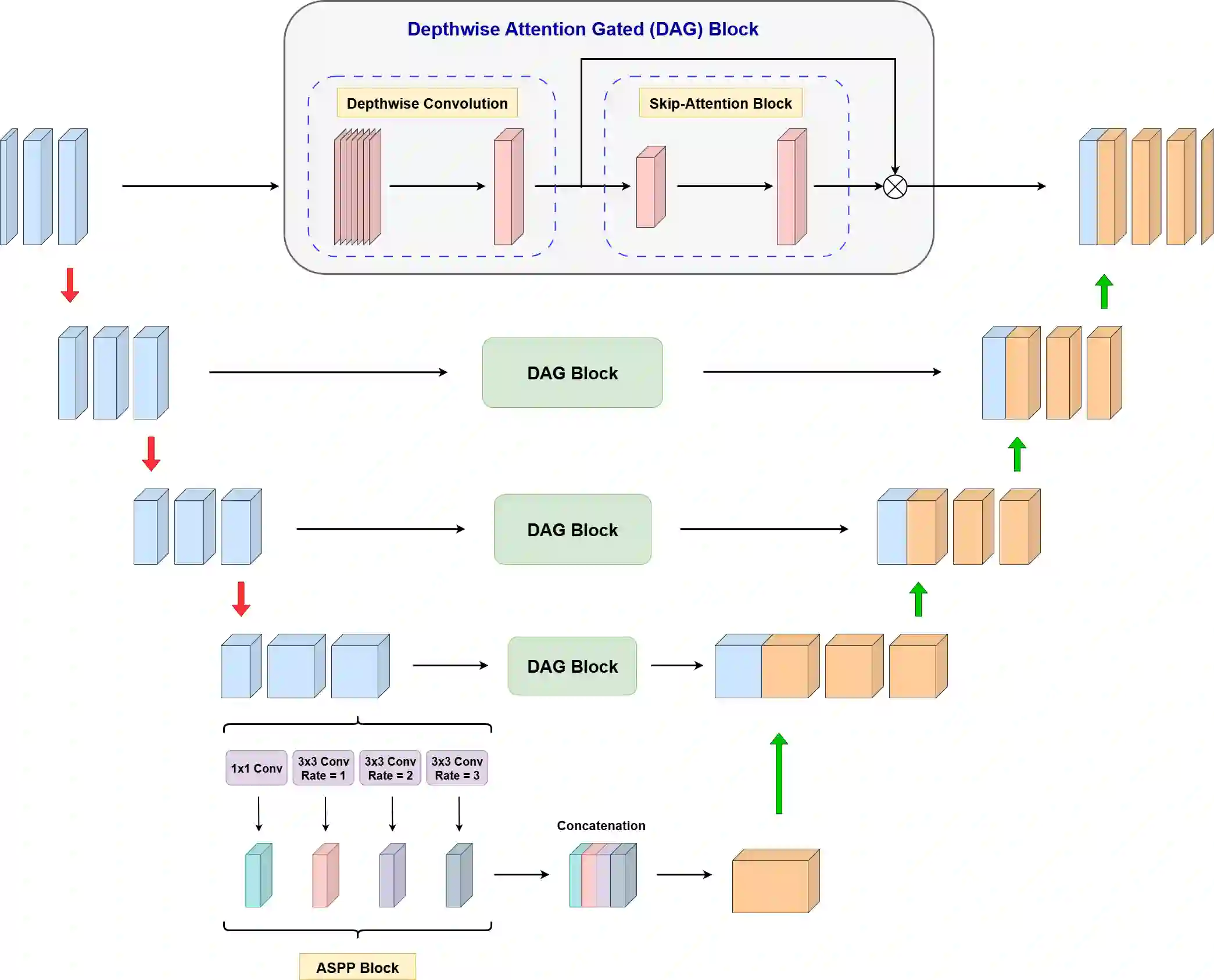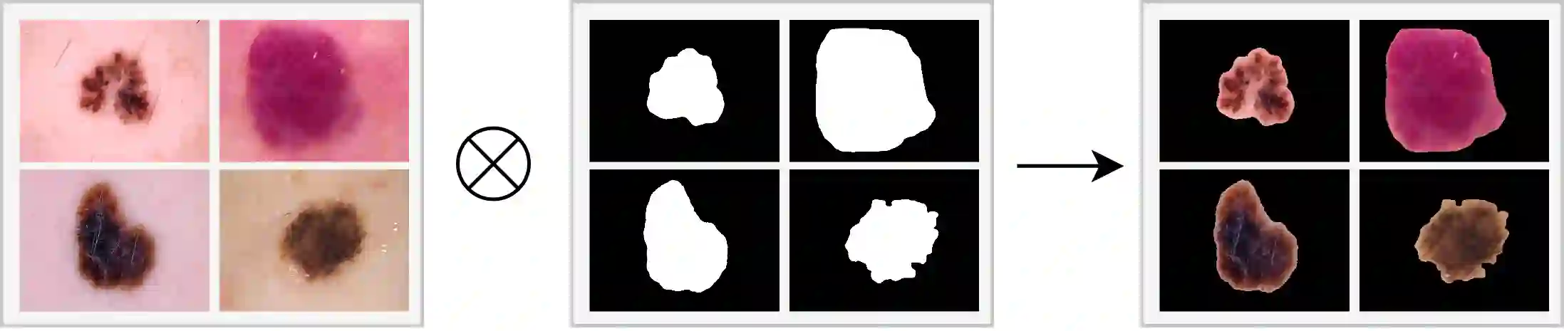 翻译:皮肤癌是一种危及生命的疾病,早期检测可显著改善患者预后。由于类内差异大且类间差异细微,基于皮肤镜图像的自动诊断具有挑战性。许多深度学习模型作为"黑箱"运行,限制了临床信任度。本研究提出一种基于双编码器注意力的框架,利用分割后的病灶和临床元数据,在准确性和可解释性两方面提升皮肤病变分类性能。首先采用一种融合双重注意力门控(DAG)与空洞空间金字塔池化(ASPP)的新型Deep-UNet架构进行病灶分割。分类阶段使用两个DenseNet201编码器——一个处理原始图像,另一个处理分割病灶,通过多头交叉注意力机制融合特征。这种双输入设计引导模型聚焦于显著病理区域。此外,基于Transformer的模块将患者元数据(年龄、性别、病灶部位)整合到预测中。我们在HAM10000数据集及ISIC 2018和2019挑战赛上评估所提方法。该方法实现了最先进的分割性能,与基线模型相比显著提升了分类准确率和平均AUC。为验证模型可靠性,我们采用梯度加权类激活映射(Grad-CAM)生成热力图。可视化结果证实,与依赖虚假背景特征的模型不同,本模型的预测基于病灶区域。这些结果表明,将精确的病灶分割和临床数据与基于注意力的融合相结合,可构建更准确且可解释的皮肤癌分类模型。