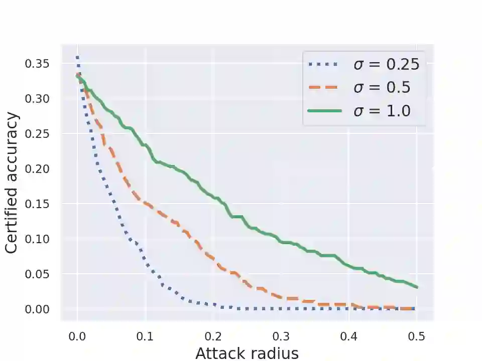 翻译:随机平滑被认为是最先进的对抗性扰动防御。 但是,它大量利用了一个事实,即分类者将输入对象映射成分级概率,而不是侧重于那些通过计算距离进行分类的计量空间到分类原型嵌入空间。在这项工作中,我们将随机平滑推广到几张将输入映射成正常嵌入的微小学习模型上。我们对这种模型的利普施奇茨连续性进行了分析,并用$@ell_2$在几近的学习情景中可能有用的强力测试。我们的理论结果得到了不同数据集实验的证实。