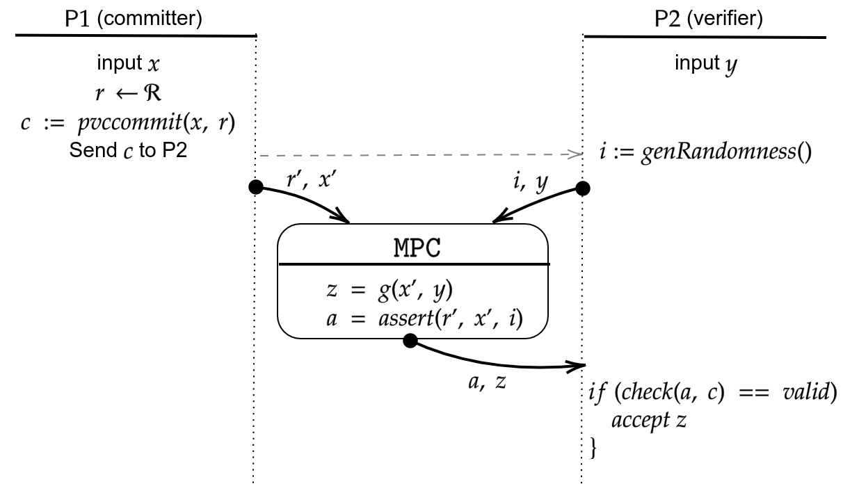 翻译:我们解决了在两方计算中有效核实承诺的问题。这涉及到这样一种假设:一党P1承诺在随后安全计算中使用价值x美元,与另一党P2承诺在随后安全计算中使用价值x美元,后者希望得到保证P1没有作弊,即美元确实是安全计算中输入的价值。我们的建筑在可公开核查的隐蔽(PVC)安全模式下运作,这是放松在P1面临声誉损害的情况下适合的恶意MPC模式。我们引入了PVC承诺计划和索引化散列功能的概念,以建立符合PVC框架的承付计划,并提议为计算和布林亚电路进行施工,以产生非常高效的电路。从实际角度看,我们布利安电路的施工速度是60美元,以安全方式评估的速度更快,使用比基于仓促的基线方法少36美元。此外,我们表明,我们的建筑工程在所需的非线性操作方面十分紧凑紧,通过证明非线性安全度较低,为非线性电路路路架提供高效的计算。最后,我们通过不线性的安全性安全度的统计安全记录,让我们能够快速地计算。