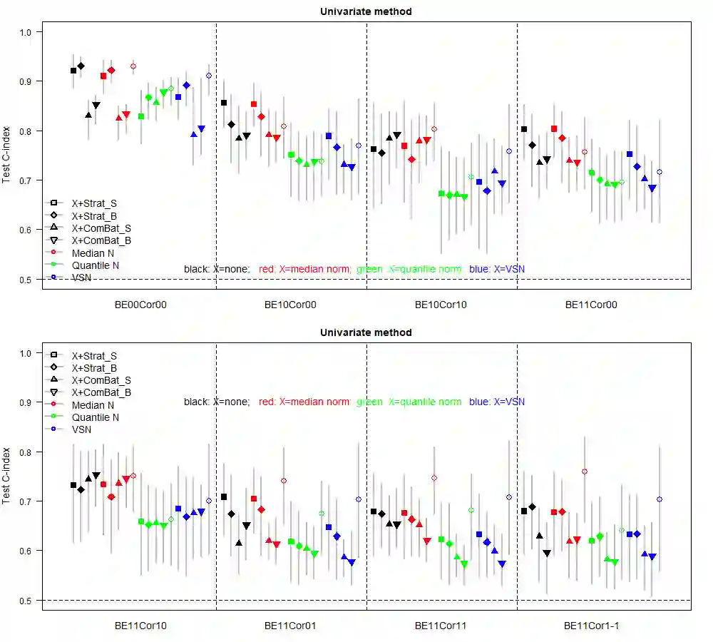 翻译:运算组数据的正常化翻译因批量效应的正常化而受阻。管理批量效应的统计方法最初是在样本组比较时开发的,后来又为生存结果预测等其他设置而借用。最显著的方法是ComBat,该方法将批量调整,将批量与样本组一起纳入线性回归中的共变。然而,在生存预测中,ComBat 使用没有可定义的组群来求生存结果,而是与生存回归相继进行生存回归。为了解决这些问题,我们提出了一个名为BatMan(BatMan)的新的方法(“BATch MitigAtion通过stratificatioN” ) 。该方法将批量调整为生存回归中的层,并使用LASSO等变量选择方法处理高维度回归。我们评估了巴特曼的性能与ComBatt的对比,每件都单独或与数据正常化一起使用,在预测性变现的模型中,根据预测性能信号强度和分批输出环境环境进行模拟研究。我们所作的模拟模型显示(1) BatMan 和BatBatBat Bat 数据在数据中,其性数据在数据中可以进一步进行数据分析中进行数据变变变现。在数据中进行数据变现数据分析,在数据中进行数据变现数据分析时,在数据中进行数据变现数据分析。