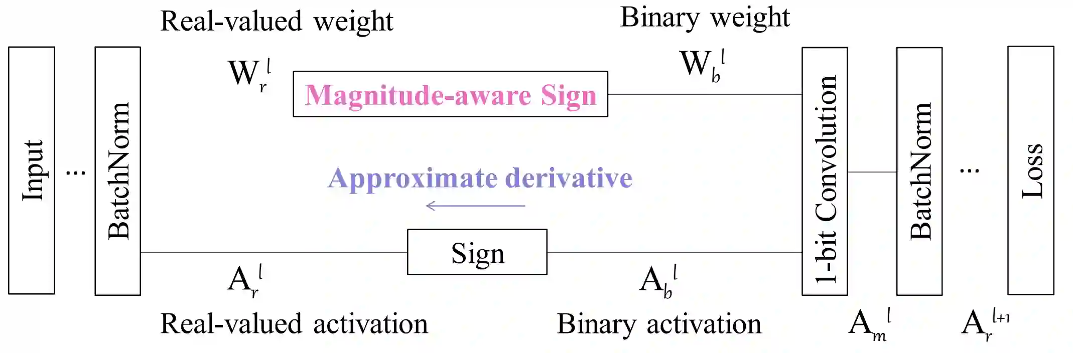 翻译:在这项工作中,我们研究了1比特的神经神经网络(CNNs),其重量和激活都是二进制的。在效率方面,当前1比特的CNN的分类准确性比在大型数据集(如图像网)上的对应的1比特的CNN模型要差得多。为了尽可能缩小1比特和实际估值的CNN模型之间的性能差距,我们提出了一个新颖的模型,称为Bi-Real网,它将真正的启动(在1比特的螺旋的精度和/或BatchNorm层之后,在信号功能之前)与连续的链块的激活连接起来。虽然是有效的,但目前的1比特1比特的CNN(如图像网)的分类准确性能比对应的1比特的有实际价值的CNNNM模型模型要差得多。此外,我们开发了一个专门的培训算法,包括3比特1比特的技术性的新技术算法。首先,我们从不可辨的硬信号函数的衍生物中获取了近近一点。第二,我们提议用1比标准级的模型化的模型更精确的直径直径直径直径直径直径直达的直径直线。我们建议, 。我们提议在更新了一个比前的网络的模型的模型的模型到比重的内基级的深度的深度的内推算法,在更新了62的内,比重的深度的内基比重的内基比重。我们的内基比重。我们建议,比重的内基到比重的Sir算法。