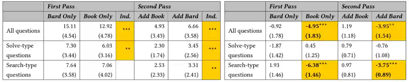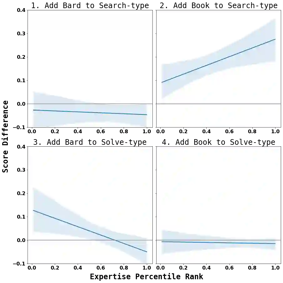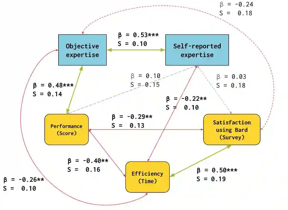 Although recent developments in generative AI have greatly enhanced the capabilities of conversational agents such as Google's Bard or OpenAI's ChatGPT, it's unclear whether the usage of these agents aids users across various contexts. To better understand how access to conversational AI affects productivity and trust, we conducted a mixed-methods, task-based user study, observing 76 software engineers (N=76) as they completed a programming exam with and without access to Bard. Effects on performance, efficiency, satisfaction, and trust vary depending on user expertise, question type (open-ended "solve" questions vs. definitive "search" questions), and measurement type (demonstrated vs. self-reported). Our findings include evidence of automation complacency, increased reliance on the AI over the course of the task, and increased performance for novices on "solve"-type questions when using the AI. We discuss common behaviors, design recommendations, and impact considerations to improve collaborations with conversational AI.