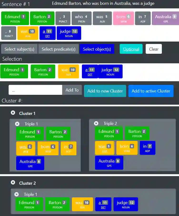翻译:开放信息提取系统(OIE)的任务是从各种关系及其相应论据中从判决中以无计划方式提取事实。由于OIE现有基准不完整,OIE系统的内在性能难以测量:地面真相提取没有将从句子中提取的相同事实的所有可接受的表面实现情况归为一组。为了更现实地衡量OIE系统的表现,有必要从输入句子中手工对完整事实进行批注(即所有可接受的对同一事实的表面认识组)。我们建议ANIE:一个互动说明平台,为这种挑战性说明任务提供便利,并支持建立完整的面向事实的OIEE评价基准。ANIE是模块和灵活的,以支持不同的使用案例情景(即涵盖不同类型事实的基准 ) 。我们用ANIE建立两个完整的基准:一个带有verb调解事实,另一个包含被命名实体的事实。最后,我们评估了与ANIE共同创建的完整基准的若干OIE系统。我们的结果表明,现有的不完全的基准过于宽松,我们以前报告的OIEEA系统是不可靠的。