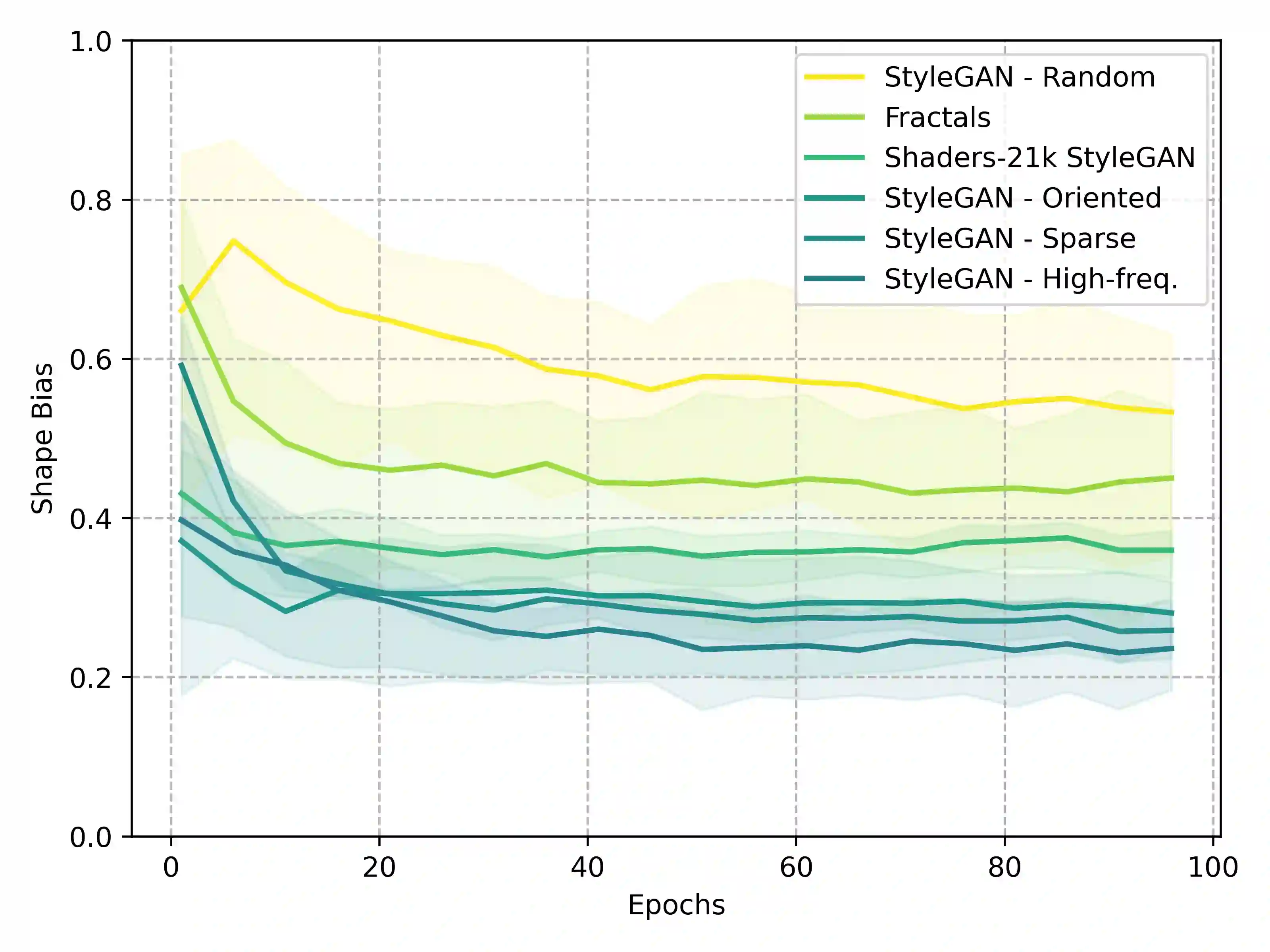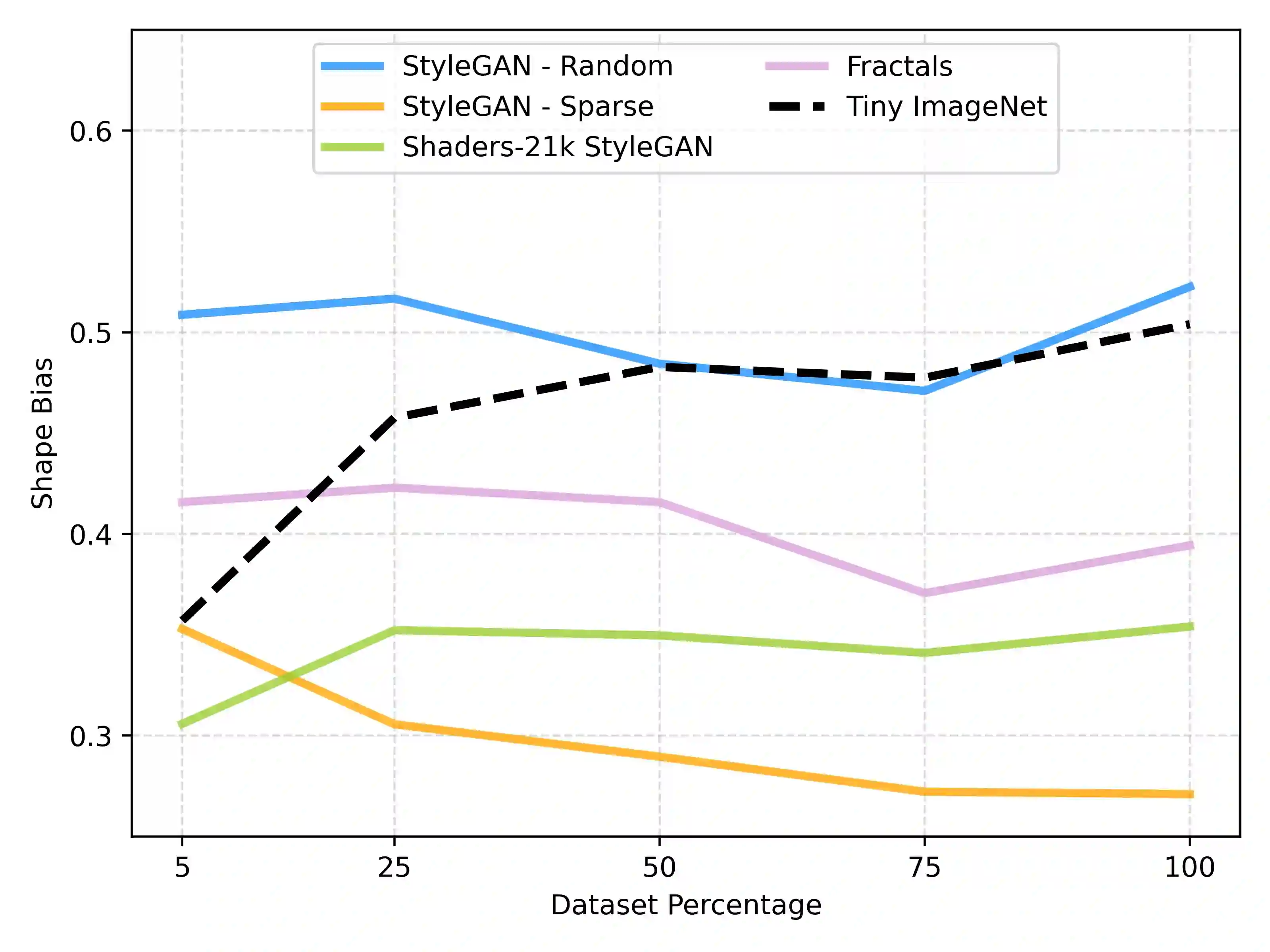 Recent advancements in deep learning have been primarily driven by the use of large models trained on increasingly vast datasets. While neural scaling laws have emerged to predict network performance given a specific level of computational resources, the growing demand for expansive datasets raises concerns. To address this, a new research direction has emerged, focusing on the creation of synthetic data as a substitute. In this study, we investigate how neural networks exhibit shape bias during training on synthetic datasets, serving as an indicator of the synthetic data quality. Specifically, our findings indicate three key points: (1) Shape bias varies across network architectures and types of supervision, casting doubt on its reliability as a predictor for generalization and its ability to explain differences in model recognition compared to human capabilities. (2) Relying solely on shape bias to estimate generalization is unreliable, as it is entangled with diversity and naturalism. (3) We propose a novel interpretation of shape bias as a tool for estimating the diversity of samples within a dataset. Our research aims to clarify the implications of using synthetic data and its associated shape bias in deep learning, addressing concerns regarding generalization and dataset quality.
