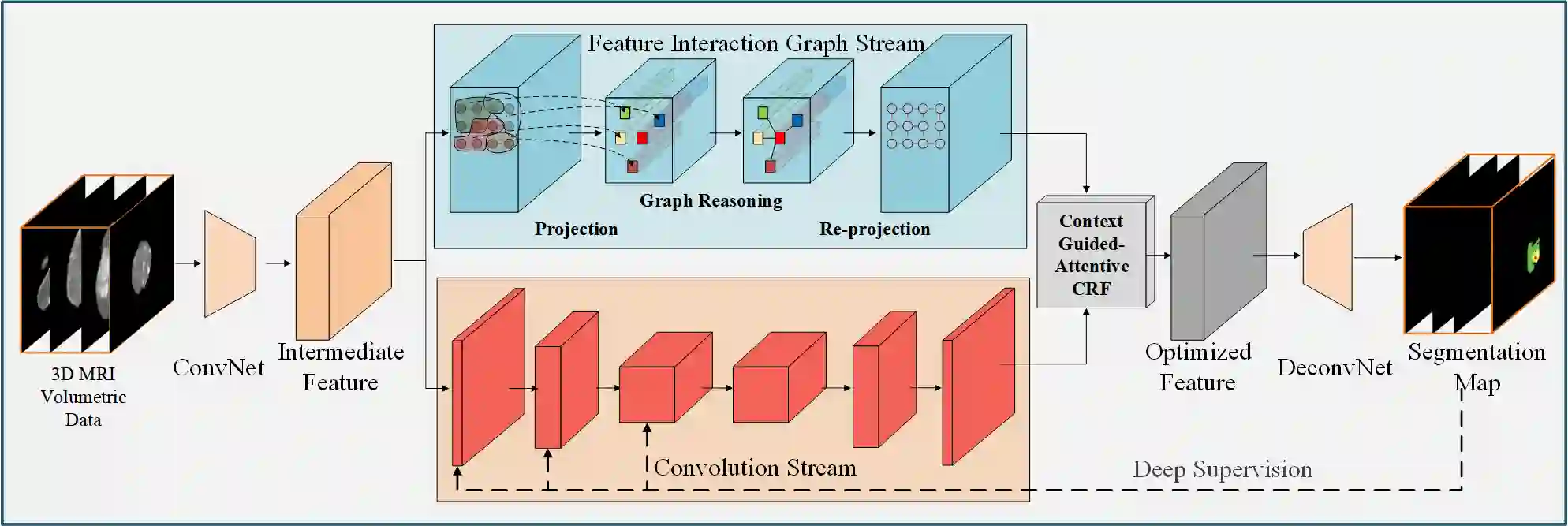 翻译:在3D磁共振成像中,脑肿瘤的自动分解在肿瘤诊断、进展监测和手术规划方面发挥着积极作用。根据进化神经网络,特别是全面进化网络,以往的研究显示,有一些有希望的脑肿瘤分解技术。然而,这些方法缺乏适当的战略,无法将背景信息纳入处理局部模糊问题,导致在具有挑战性的情况下产生不令人满意的分解结果。在这项工作中,我们提议建立一个新型的“环境软件网络”,其中含有一种复合环境认知特征提取器(HCA-FE)和一种用于特征融合的“环境引导加速加速随机场(CG-ACRF)”。HCA-FE捕捉了来自进化空间和特征互动图中环境的高维度和歧视性特征特征特征特征特征。我们采用了概率图形模型的强大推论能力,以学习隐藏的地貌图,然后使用CG-ACRFRF将不同环境的特征融合起来。我们评估了关于公众可访问的脑分解数据集 BRATS2017 和BRATS2018的拟议方法, 相对于若干州级的实验性算法或比较标准算法展示了不同的实验性结果。