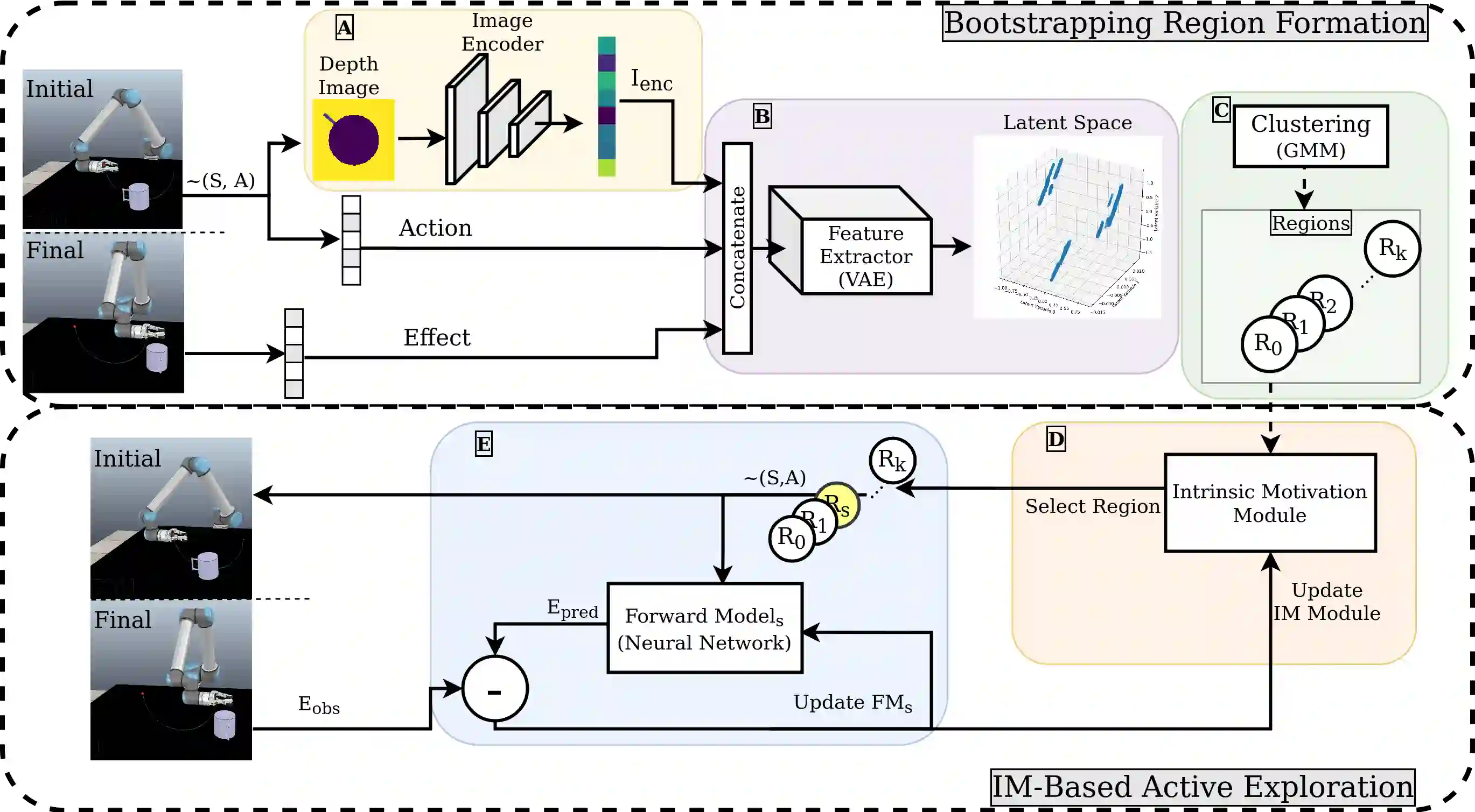 翻译:使人工剂具备感官模具技能的有效方法之一是使用自我探索。 要高效地做到这一点, 时间和数据收集费用昂贵。 在本研究中, 我们提议了一个探索机制, 将动作、 物体和动作结果的表示方式混合到一个潜在的空间, 形成本地区域以容纳前方模式学习。 该代理使用内在动机选择具有最高学习进步的远期模型, 在某个探索步骤中采用。 这与婴儿学习方式相似, 因为高学习进展表明在选定区域学习问题并非太容易或太困难。 提议的方法在桌面环境中由模拟机器人验证。 模拟场景由机器人和各种物体组成, 机器人每次使用一组参数化的行动与其中的一个进行互动, 并学习这些互动的结果。 采用拟议方法, 机器人按照现有的内在动机方法来组织其学习课程, 并在学习速度上超越它们。 此外, 学习机制展示了部分与婴儿发育相匹配的特点; 特别是, 拟议的系统学会以分阶段的方式预测不同技能的结果 。