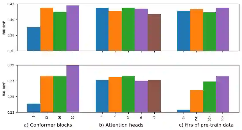 翻译:从未贴标签的数据中学习代表性一直是人工智能研究的主要兴趣所在。 虽然自我监督的语音代表学习在语言研究界很受欢迎,但很少有作品全面分析了用于非声音任务的音频代表学习。 在本文中,我们提议了一种自监督的音频代表学习方法,并将其应用于下游各种非语音的音频任务。我们把众所周知的wav2vec 2.0框架与参数效率符合者架构相结合,该框架在自我监督的语音任务学习中取得了成功。 在音频网基准方面,我们实现了0.415的平均精确度(MAP)分,这是通过只听音的自我监督学习在这个数据集上的新状态。我们经过微调的校对的校对者也超越或匹配了先前在监督下游任务上经过预先训练的系统的业绩。我们进一步讨论了预先培训和微调的重要设计考虑因素。