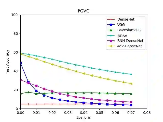 翻译:与传统神经网络不同,贝叶神经网络(BNN-DenseNet)与传统神经网络(TNNS)不同,强健并善于通过随机性来应对对抗性攻击。这种随机性改善了对不确定性的估计,这是TNS缺少的一个特征。 因此,我们调查了BNS对白箱攻击的强力性,使用了多种巴伊西亚神经结构。此外,我们创建了我们的BNNN模型,称为BNN-DenseNet,方法是将贝伊推断(即变换贝斯)与DenseNet结构(即变换贝斯贝斯)和BDAVAV相结合,将这一干预与对抗性培训相结合。在CIFAR-10和FGVC-Aircraft数据集上进行了实验。我们用白色盒子攻击我们的模型($lffty$-FGSM,$läffty$-PGD,$l_2$-PGD, $l_FNEM, EO $lfinftylemental-frimeal laction 和EODFGD) 也提供了更准确性的不易反对称的网络。在BNNBBF-BF-BF-BF-BF-BFMFMFIF-BF-BF-BF-F-BF-BF-BF-BF-F-BF-F-FT-BF-BFT-FT-SM-BFT-F-FT-FT-SM-AT-S-F-S-S-F-F-S-F-S-S-S-S-S-S-S-S-S-S-S-S-F-F-F-F-F-F-F-F-F-F-S-S-F-F-F-F-F-F-F-F-F-F-F-F-F-F-F-F-F-F-F-I-S-S-S-S-S-S-S-S-S-S-S-S-S-S-S-I-I-I-I-I-I-