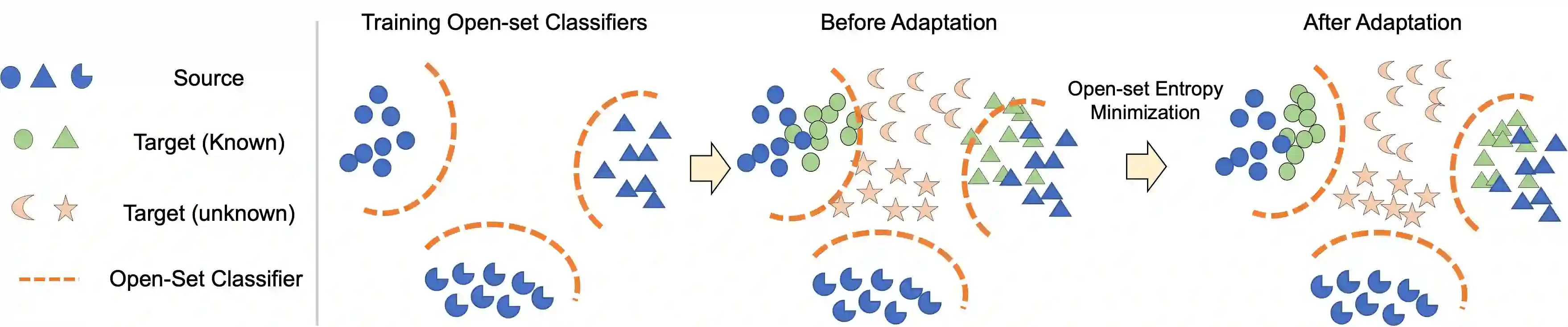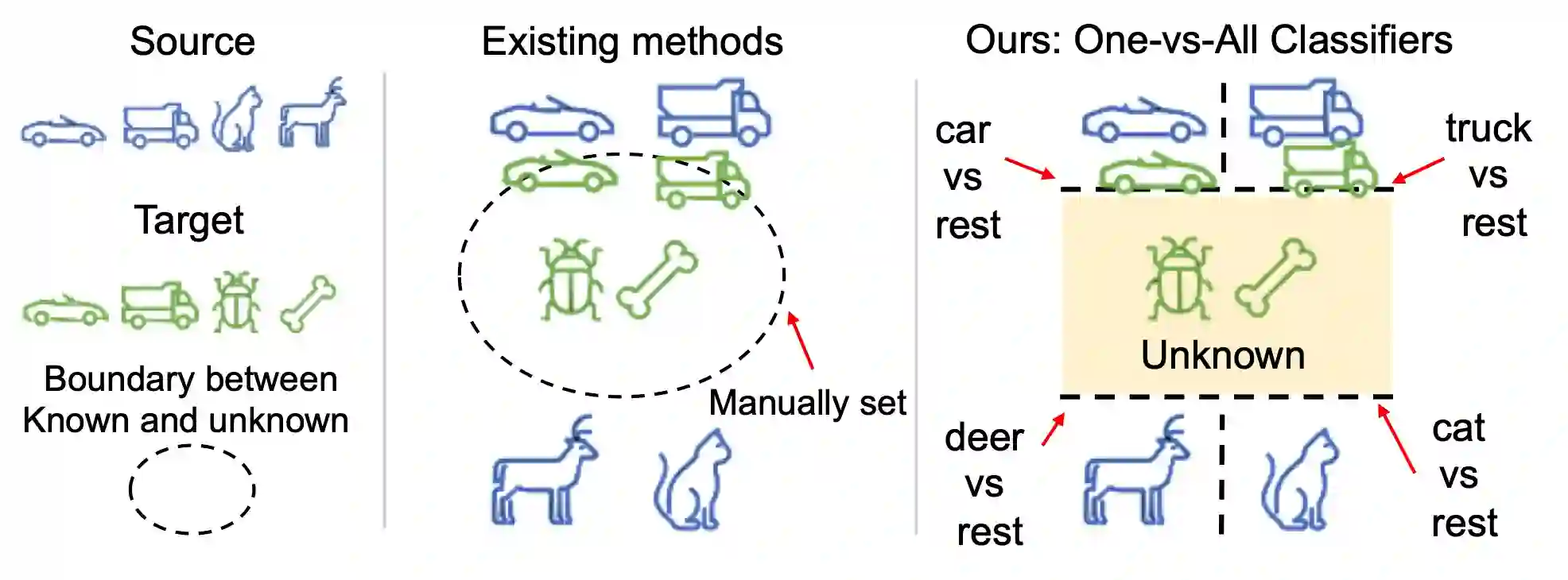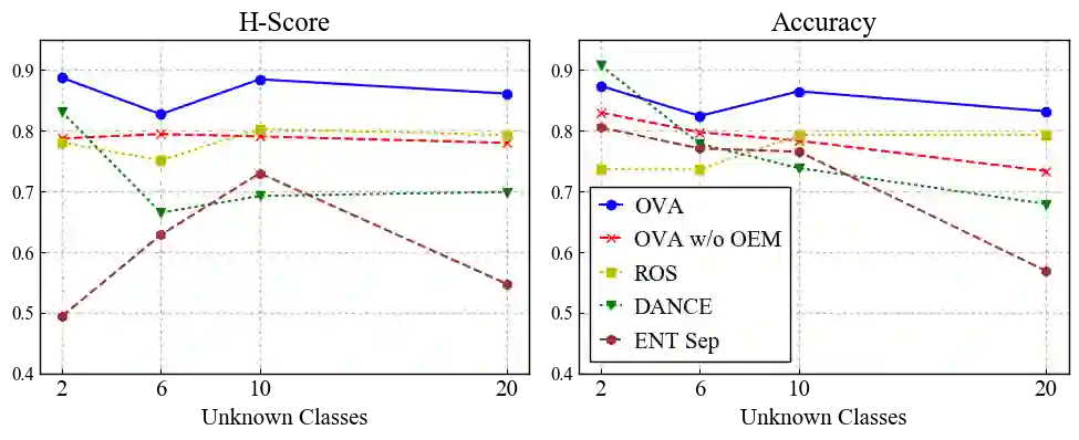 翻译:通用域适应 (UNDA) 旨在处理两个数据集之间的域档和类别档,其中主要的挑战在于转移知识,同时拒绝在标签源数据中不存在、但在未标签目标数据中存在的未知类别。 现有方法根据验证或未知样本的预定义比例,手工设定了拒绝未知样本的阈值, 但这一策略不切实际。 在本文中, 我们提出一种方法, 使用源样本来学习阈值, 并将其调整到目标域。 我们的想法是, 源域中最小的分类间距离应该是决定目标中已知或未知的值的良好阈值。 为了学习分类间和分类内距离, 我们提议使用标签源数据为每个类别培训一个一至五的分类器。 然后, 我们通过最小化分类酶, 将开放式定分级器调整到目标域。 由此产生的框架是UNDA的所有基线中最简单的, 并且对超分度但差值的基线值不敏感。
