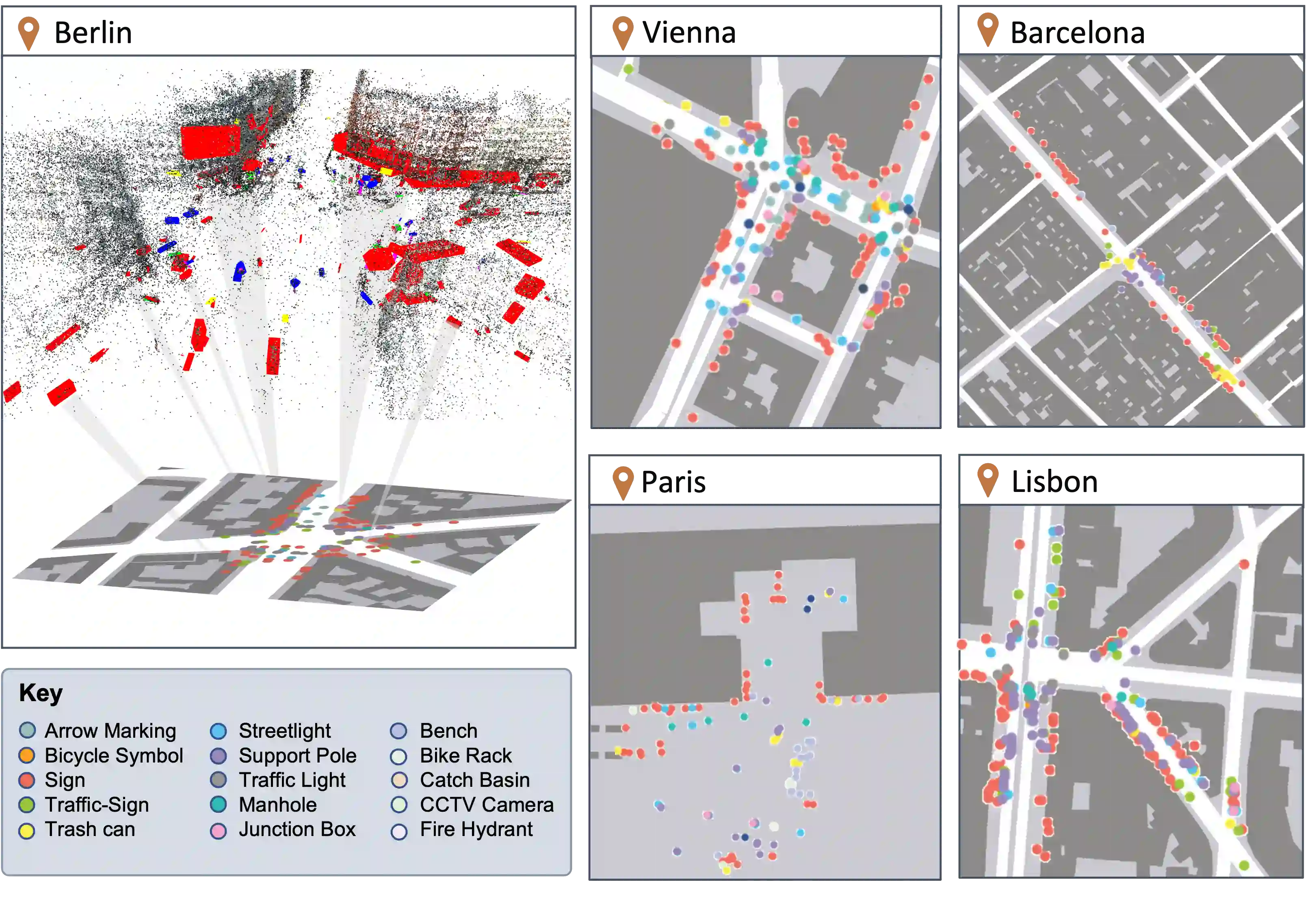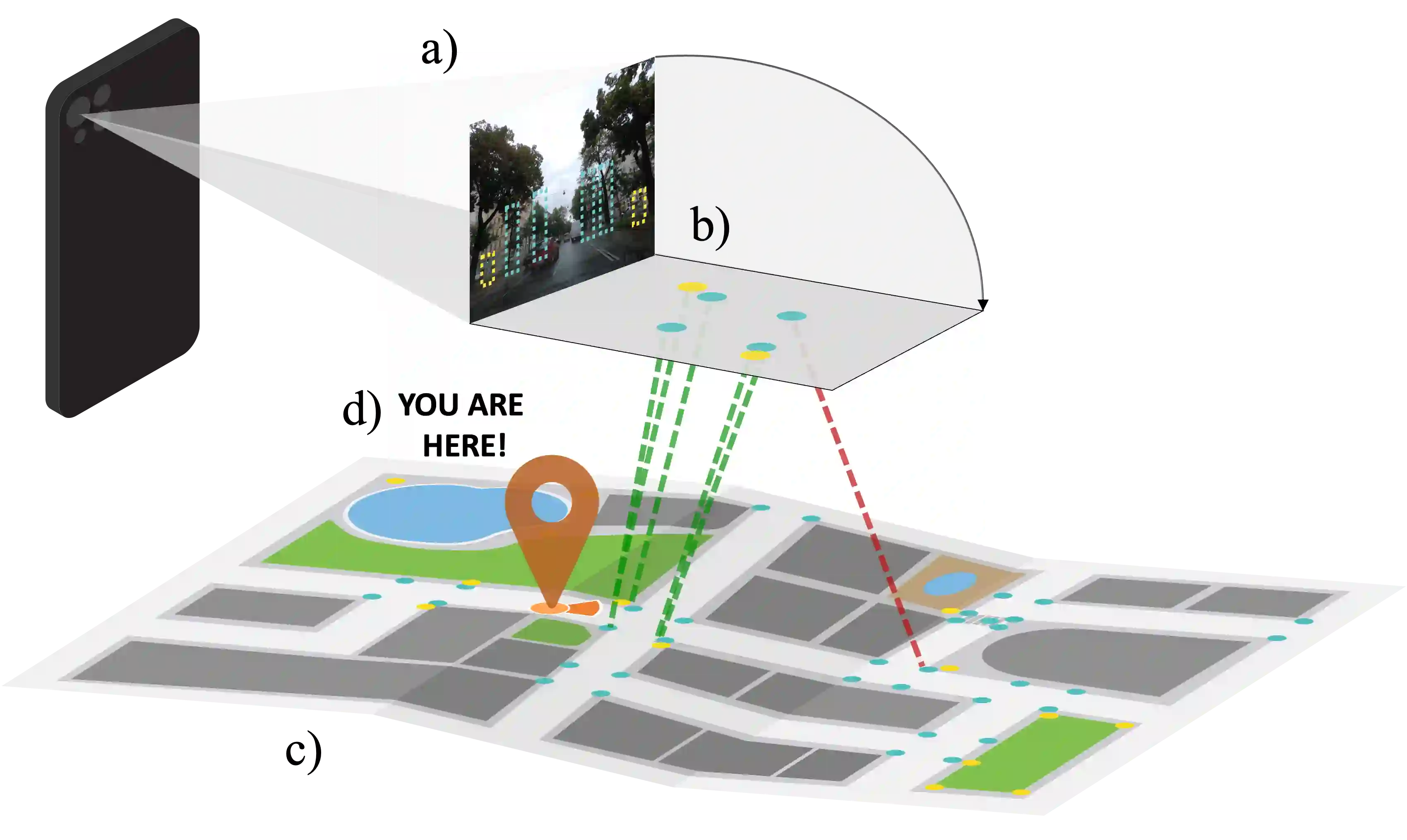 翻译:我们引入了Flatlandia,一个新的问题,用于从由两个特定任务组成的对象检测中的单个图像进行视觉定位:i)粗略的地图定位:将观察到的一组对象与对象地标的2D地图相匹配;ii)细粒度3DoF定位:在2D地图中估计图像的纬度、经度和方向。解决这些新任务利用了大量提供了标注有常见对象GPS位置的城市开放地图(例如通过测量或众包)的存在。与通常用于视觉定位的大规模3D模型相比,这样的地图也更节约存储空间,同时还保护隐私。由于现有数据集不适用于所提出的问题,我们提供了Flatlandia数据集,设计用于在多个欧洲城市的城市环境中进行3DoF视觉定位,并基于众包数据。我们使用Flatlandia数据集来验证所提出任务的复杂度。
