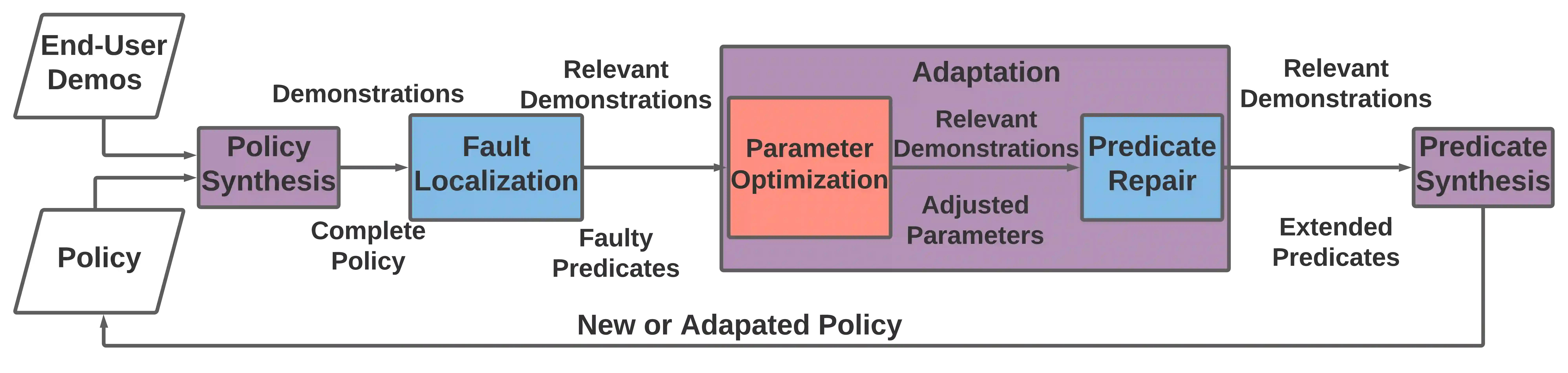 翻译:机器人社会导航受人类偏好和环境特有情景的影响,例如电梯和门,因此有必要对终端用户进行适应性。最先进的社会导航方法分为两类:以模型为基础的社会制约因素和以学习为基础的方法。这些方法虽然有效,但具有根本性的局限性 -- -- 以模型为基础的方法需要制约和参数调整,以适应偏好和新情景,而以学习为基础的方法则需要奖励功能、大量培训数据,并且很难适应新的社会情景或演示有限的新领域。在这项工作中,我们提议“超常应用信息化方案合成(DIPS)”通过学习和调整以人类可读的象征性方案为形式的社会导航来克服这些局限性。 DIPS通过将方案综合、参数优化、上游修理和反复的人类演示结合起来,学习和调整无模型的行动选择政策,使之适应于比学习为基础的方法少的数量级,而不是以学习为基础的方法。我们引入了一种新的上游修复技术,通过增加现有政策来适应以前看不见的社会情景或偏好。我们提出实验结果表明,IDIPS:1)综合有效的政策,可以将现有政策与改变的偏好,2)将现有政策与改变实际选择相结合,3,可以将机器人改造政策推广到模拟,可以将新的政策扩大到制造。