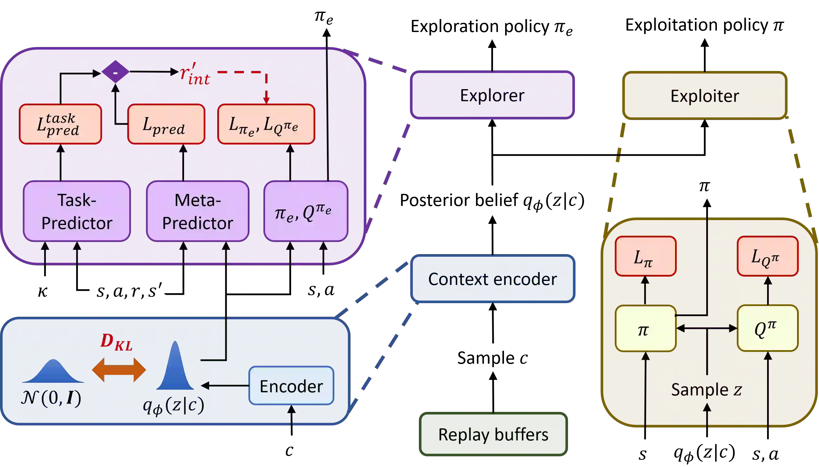 翻译:元强化学习(meta-RL)从先前的任务中获取知识,并实现快速适应新任务。尽管最近取得了进展,但元强化学习(meta-RL)的高效探索仍然是稀释任务中的一项关键挑战,因为它要求在元培训和适应两个方面迅速找到与任务相关的丰富经验。为了应对这一挑战,我们明确为元强化学习(meta-RL)树立了一个探索政策学习问题模型,该模型与开发政策学习分离,并引入了一个新的增强权能驱动的探索目标,目的是为确定任务而最大限度地增加信息收益。我们获得了相应的内在奖赏,并开发了一个新的脱离政策的元强化框架,通过分享任务推理知识,有效地学习了不同背景意识的探索和利用政策。实验性评估表明,我们的元强化方法大大超越了各种稀释的 Mujoco 移动任务和更为复杂的稀释型元世界任务的最新基线。