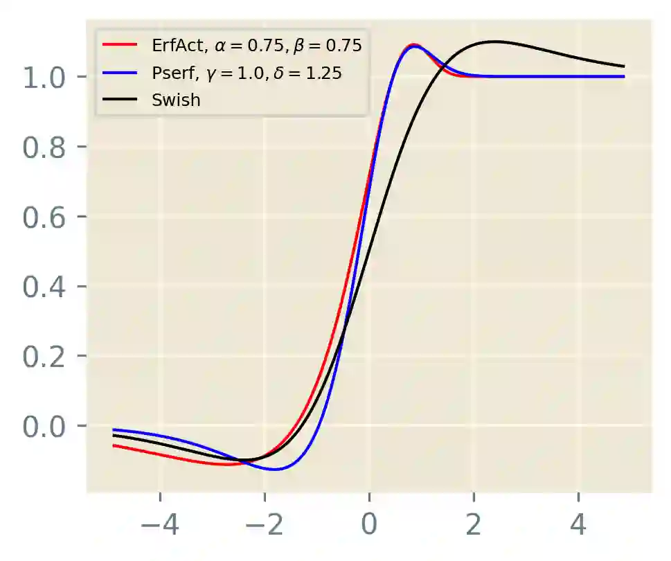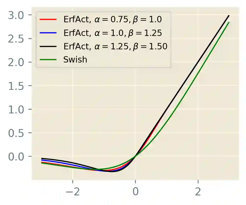 翻译:激活功能是引入网络非线性的一个神经网络的关键组成部分。 神经网络的最先进的性能也取决于对激活功能的完美选择。 我们提议了两个新的非单声波光滑的可训练激活功能, 叫做 ErfAct 和 Pserf。 实验显示, 与RELU、 Swish 和 Mish 等广泛使用的激活相比, 拟议的功能大大改善了网络的性能。 用 ErfAct 和 Pserf 替换 ReLU。 在CIFAR100 数据集中, Shufflennet V2 (2.0x) 网络的顶级-1精度改进了5. 68% 和 5.42%, 在 CIFAR100 数据集中, Shufflenet V2 (2.0x) 网络的顶级精度改进了2. 11% 和1. 96%, 在 Pascal VOC VOC 数据集中的 SD300 模型中, 平均精度改进了1.0%。