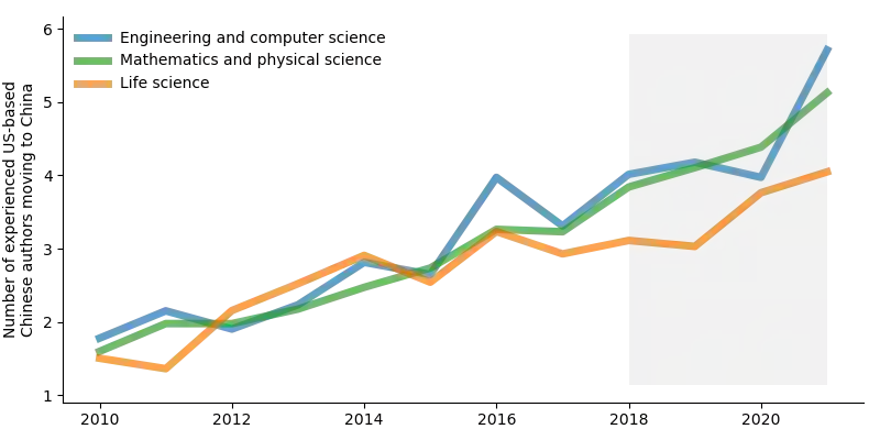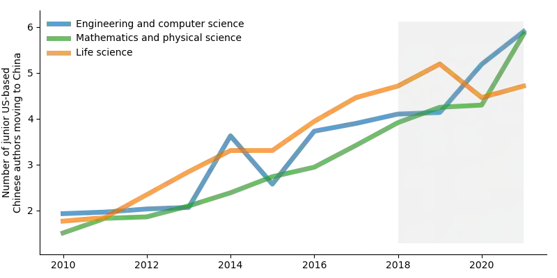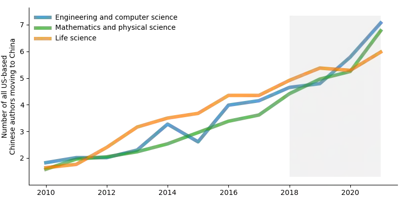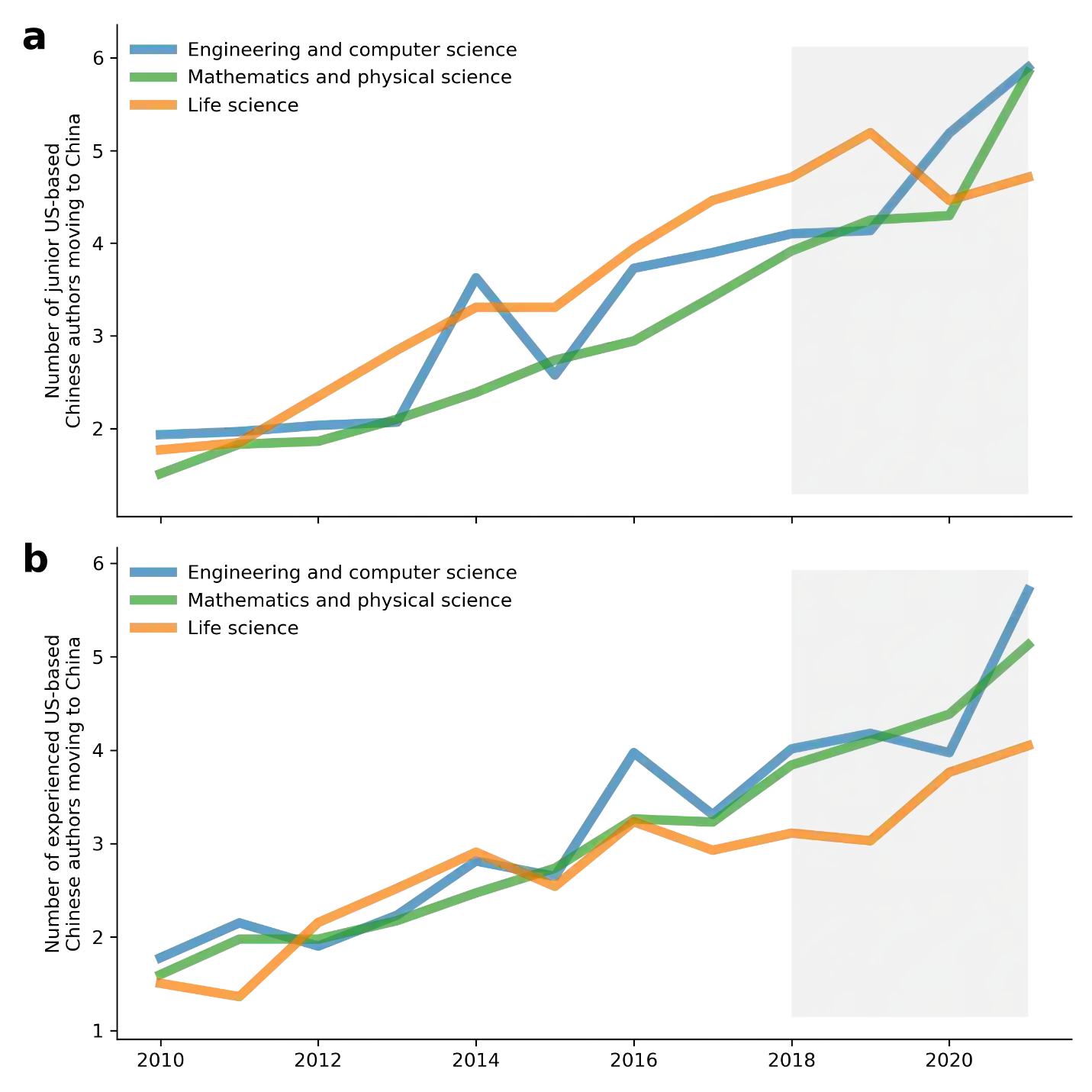翻译:美国在科学和技术方面的领导地位极大地得益于来自其他国家的移民,特别是近几十年来来自中国的移民。 然而,自2018年在特朗普政府下启动中国倡议以来,由于感受到潜在的联邦调查压力,美国华裔科学家现在面临离开美国的更大激励和申请联邦赠款的更少激励。 分析230多万份科学论文的机构附属关系数据,我们发现华裔科学家从美国返回中国的人数稳步增加。 我们还对美国大学在任期或保有权轨道上聘用的华裔科学家进行了调查(n=1300 ), 结果表明他们普遍感到恐惧和焦虑,因此考虑离开美国和(或)停止申请联邦赠款。