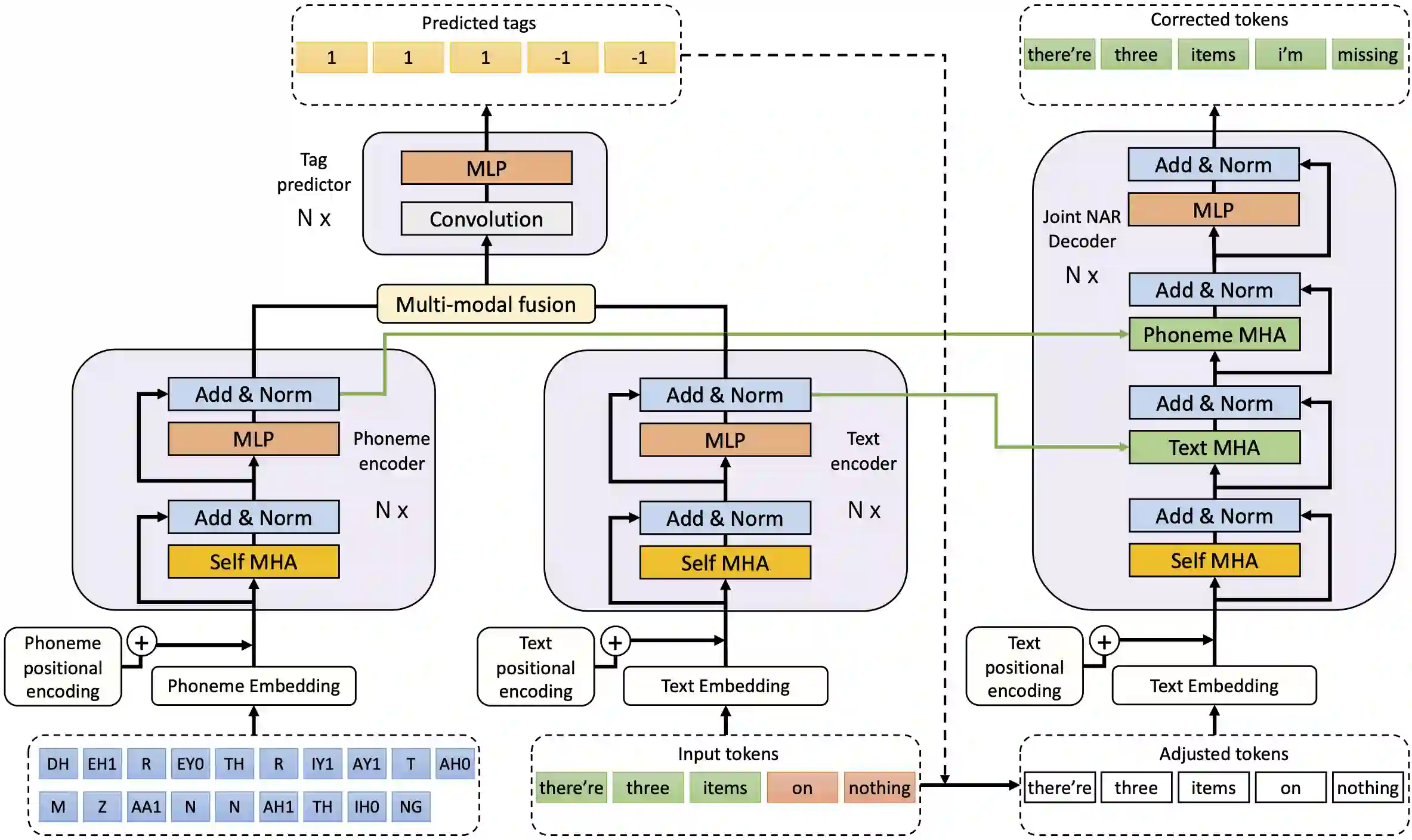 Speech-to-text errors made by automatic speech recognition (ASR) systems negatively impact downstream models. Error correction models as a post-processing text editing method have been recently developed for refining the ASR outputs. However, efficient models that meet the low latency requirements of industrial grade production systems have not been well studied. We propose PATCorrect-a novel non-autoregressive (NAR) approach based on multi-modal fusion leveraging representations from both text and phoneme modalities, to reduce word error rate (WER) and perform robustly with varying input transcription quality. We demonstrate that PATCorrect consistently outperforms state-of-the-art NAR method on English corpus across different upstream ASR systems, with an overall 11.62% WER reduction (WERR) compared to 9.46% WERR achieved by other methods using text only modality. Besides, its inference latency is at tens of milliseconds, making it ideal for systems with low latency requirements.