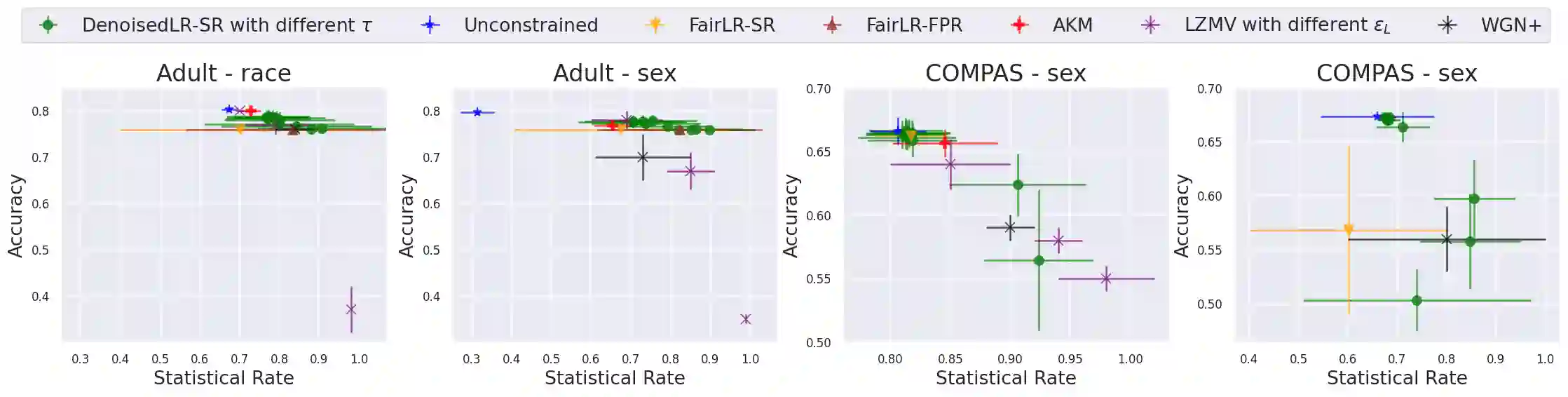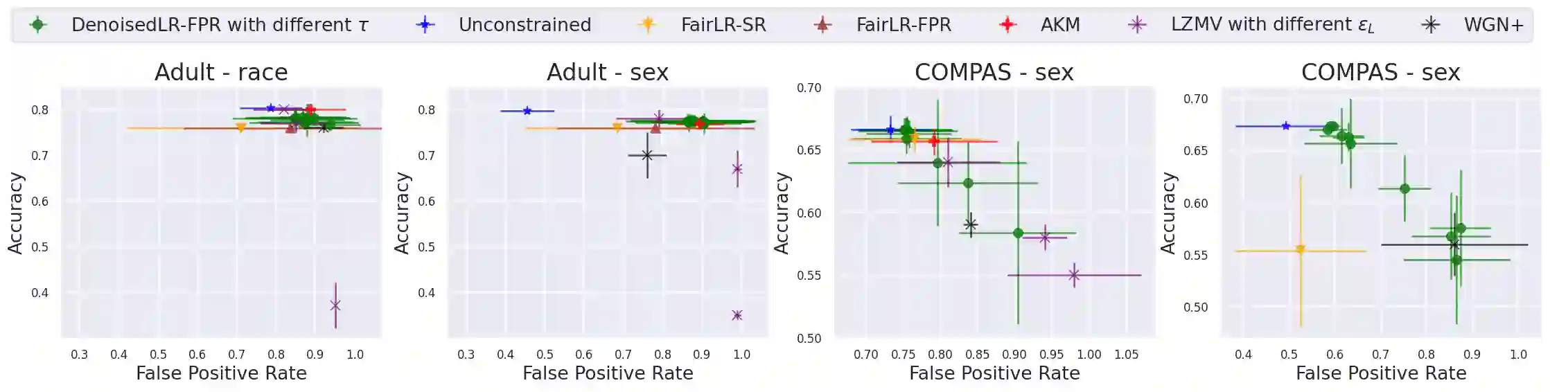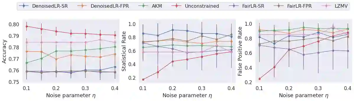 翻译:我们提出了一个优化框架,在受保护属性出现噪音扰动的情况下学习公平分类。 与先前的工作相比,我们的框架可以用一个非常普通的线性和线性公平约束类别来使用,可以处理多个非二进制受保护属性,而产出则可以处理多个非二进制受保护属性,同时对准确性和公平性提供可辨证的保障。 简而言之,我们表明,我们的框架可以被用于实现统计率或虚假的正价公平保证,而准确性损失最小,即使噪音很大,在两个真实世界的数据集中也是如此。