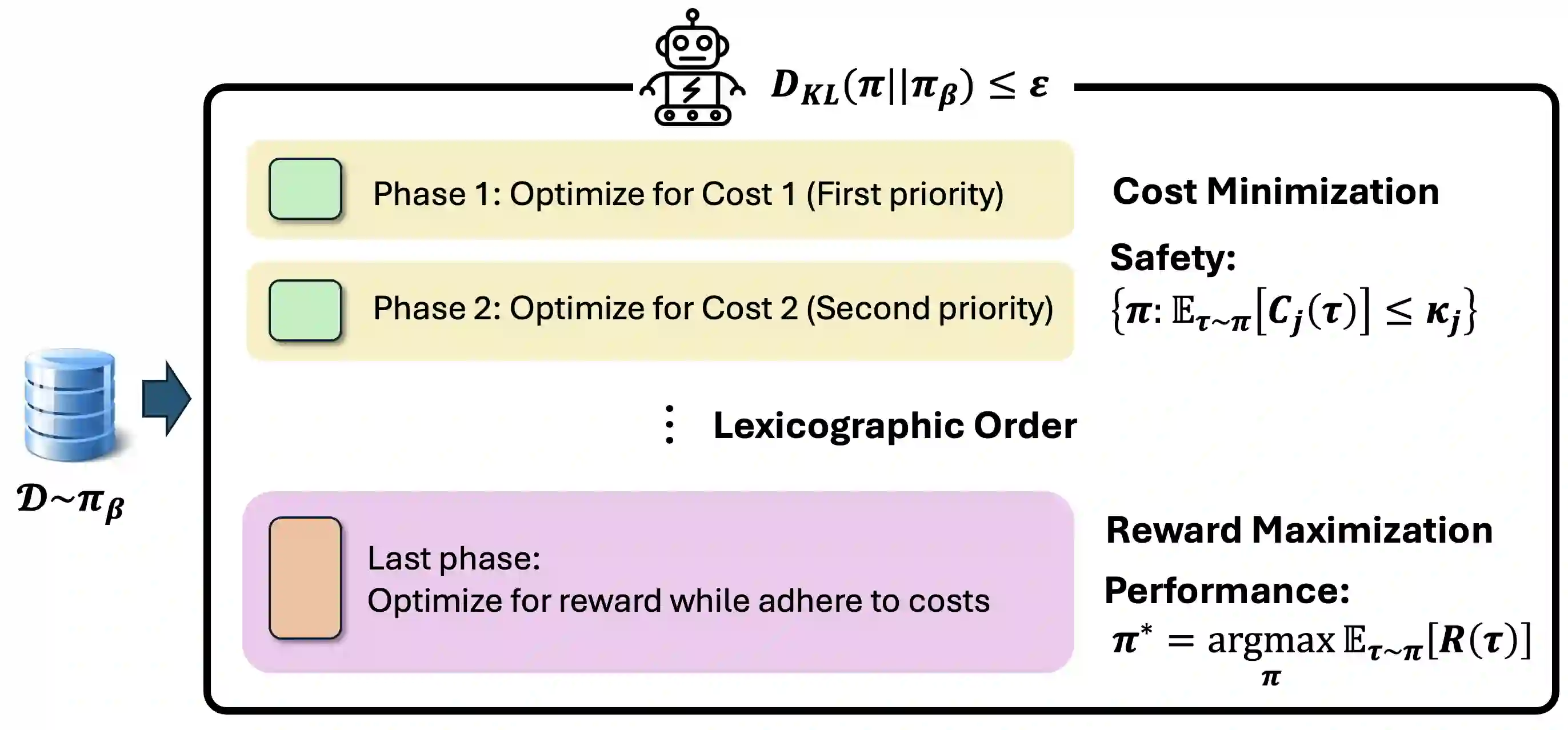 翻译:离线安全强化学习(RL)对于信息物理系统(CPS)日益重要,因为在训练期间发生安全违规是不可接受的,且仅有预先收集的数据可用。现有的离线安全RL方法通常通过约束松弛或联合优化来权衡奖励与安全,但它们往往缺乏防止安全漂移的结构性机制。我们提出了LexiSafe,一个旨在保持安全对齐行为的词典序离线RL框架。我们首先针对标准离线安全RL开发了单成本公式LexiSafe-SC,并推导了安全违规和性能次优性界限,二者共同提供了样本复杂度保证。随后,我们将框架扩展至具有层次化安全需求的LexiSafe-MC,它支持多重安全成本并允许进行自身的样本复杂度分析。实验表明,与受限离线基线方法相比,LexiSafe展现出更少的安全违规和更好的任务性能。通过将词典序优先级与结构性偏差相统一,LexiSafe为安全关键型CPS决策提供了一种实用且理论依据充分的方法。