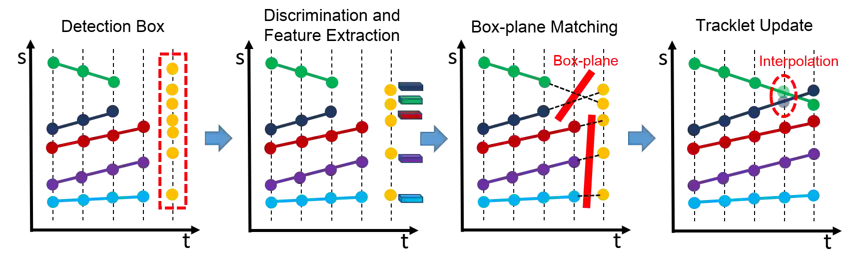 翻译:多重物体跟踪(MOT)是计算机视觉中的一项重要任务。 MOT仍然具有挑战性, 特别是在稠密的场景中。 在跟踪逐次检测框架之后, 我们提出“ 框- 平板匹配( BPM) ” 方法, 以改善密密的场景中的MOT性能。 首先, 我们设计了“ 层与层的聚合分解模型 ” ( LADM), 以过滤噪音检测。 然后, 为了正确连接其余的检测, 我们引入了“ 全球关注特征模型 ” ( GAFM), 以提取外观特征, 并使用它来计算历史轨迹和当前检测的相近性。 最后, 我们提出“ 框- 平板匹配策略” 战略, 以根据轨迹和探测之间的运动相似性和外观实现数据关联。 由于三个模块的有效性, 我们的团队在ACM Grand挑战 HiEve 2020 的轨道1 上取得了第一位置 。