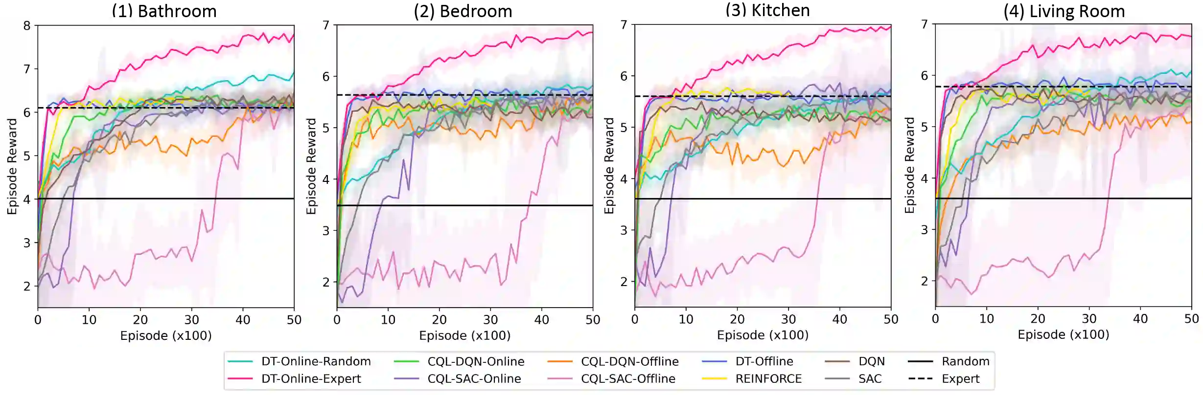 翻译:主动感知描述了一系列广泛的技术, 将机器人的规划和感知系统组合起来, 以便给机器人更多有关环境的信息。 在大多数机器人系统中, 感知通常与运动规划无关。 例如, 传统对象检测是被动的: 它只能根据收到的图像运作。 但是, 如果我们允许计划使用检测信号, 并移动机器人来收集能够最大限度地提高结果质量的视图, 我们有机会改进结果。 在本文中, 我们使用强化学习( RL) 方法来控制机器人, 以便获得能够最大限度地提高检测质量的图像。 具体地说, 我们提议使用一个带有在线微调的“ 决定变换器 ”, 它将首先以预先收集的专家数据集优化政策, 然后通过在环境中探索更好的解决方案来改进学习的政策。 我们评估了从室内情景模拟器中收集的互动数据集的功能。 实验结果显示, 我们的方法超越了所有基线, 包括专家政策和纯离线 RL 方法。 我们还提供了对奖赏分布和观测空间的详尽分析 。