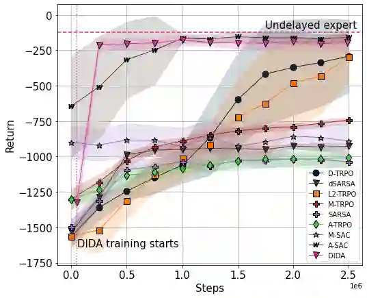翻译:当代理人的观察或互动被推迟, 经典强化学习工具通常会失败。 在本文中, 我们提出一个简单而新的高效的解决方案。 我们假设, 在未拖延的环境中, 高效的政策是已知的, 或者可以很容易地学到的, 但任务可能会在实践上受到延误, 因此我们想要考虑到这些。 我们提出了一个新奇的算法, “ 延迟与数据集聚合( DIDA ) ”, 以模拟学习方法为基础, 学习如何在未延迟的演示所延缓的环境中采取行动。 我们从理论上分析了将指导 DoDA 实际设计的方法。 这些结果对于延迟的强化学习文献也具有普遍的兴趣, 在平稳的条件下提供延迟和未拖延的任务之间的性能界限。 我们的经验显示, ANDA 在各种任务, 包括机器人传动、 经典控制和 交易上, 取得了出色的性能。
