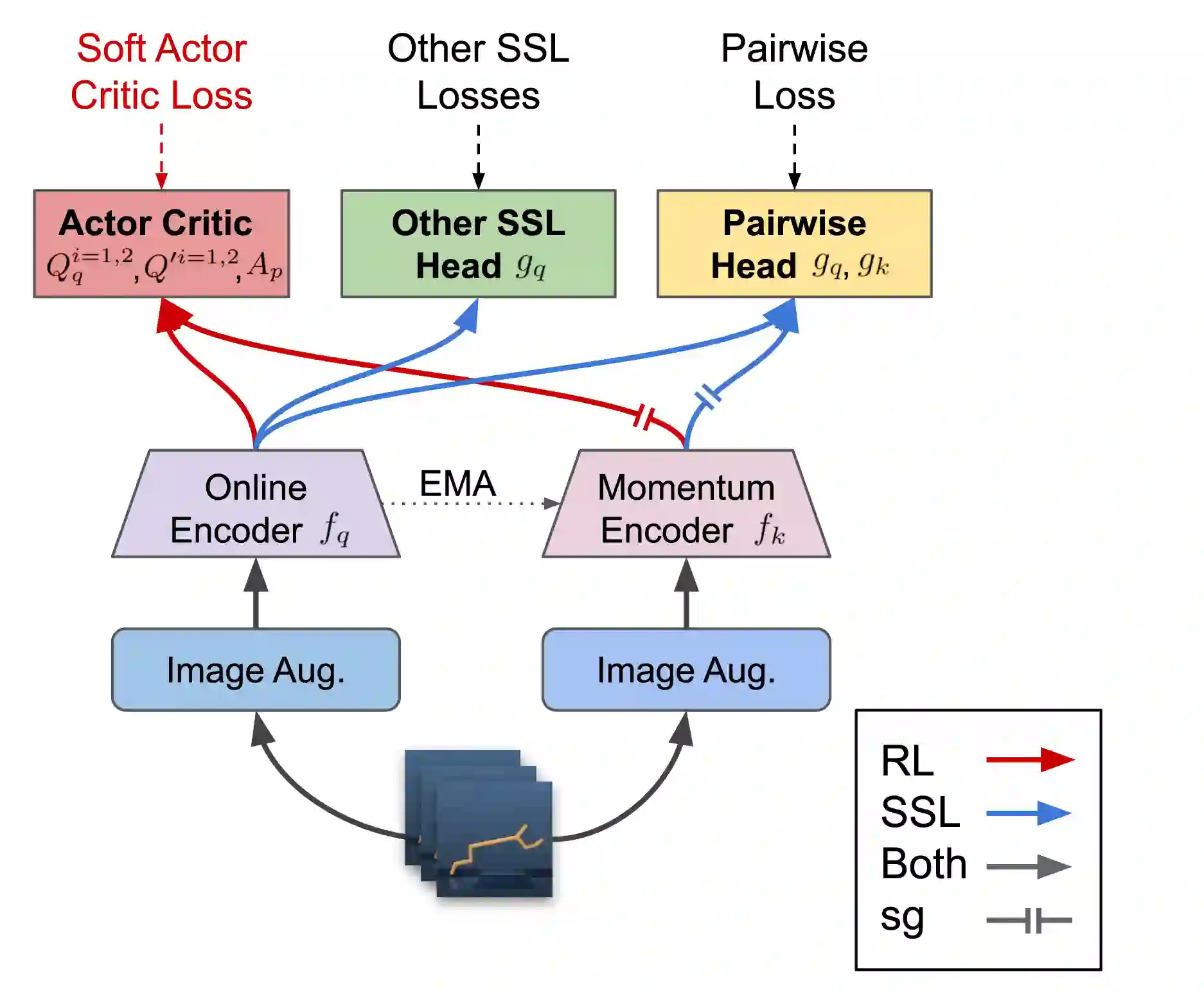 翻译:我们研究的是,自我监督的学习(SSL)能否从像素中改进在线强化学习(RL)?我们扩展了对比式强化学习框架(例如CURL),共同优化SSL和RL损失,对各种自我监督的损失进行大量实验。我们的观察表明,现有SSL的学习框架不能在基线的基础上带来有意义的改进,而只是在使用相同数量的数据和增强力时,才能利用图像增强;我们进一步进行进化搜索,以找到RL多重自我监督损失的最佳组合,但发现即使这种损失组合也未能真正超越仅使用精心设计的图像增强力的方法。通常,在现有框架下使用自我监督的损失降低了RL的性能。我们评估了多种不同环境中的方法,包括真实世界机器人环境,并证实没有单一的自我监督损失或图像增强方法能够控制所有环境,而且目前SL和RL的联合优化框架是有限的。最后,我们用SL+RL的不同方法以及所学的属性,对SL的预培训框架进行了实验性研究。