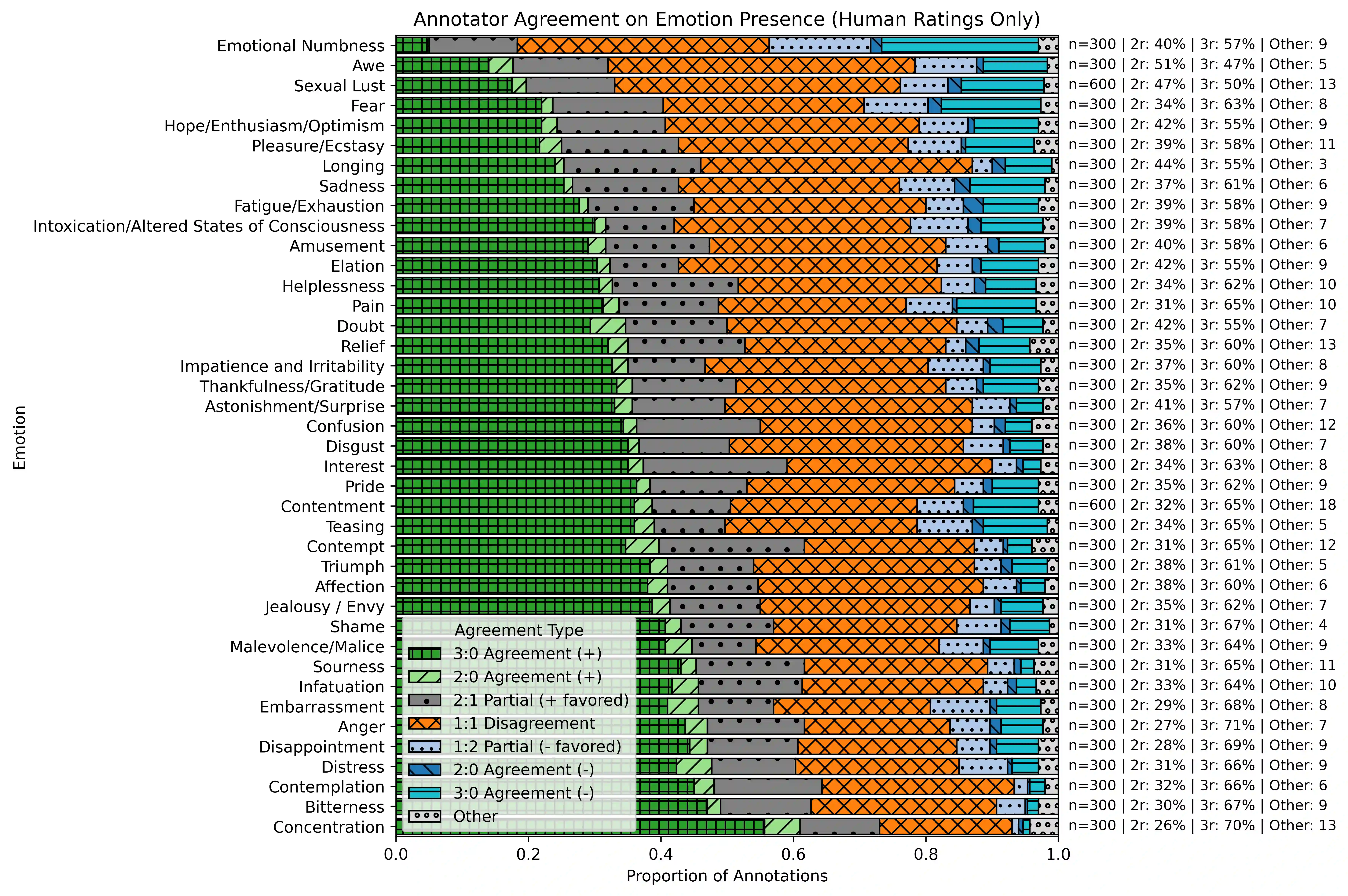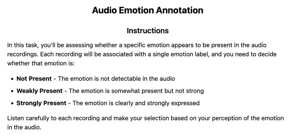 翻译:语音情感识别系统受限于现有数据集,这些数据集通常仅覆盖6-10种基本情感,缺乏规模与多样性,且在收集敏感情感状态时面临伦理挑战。我们提出了EMONET-VOICE,这是一个通过两个组成部分解决上述局限性的综合性资源:(1) EmoNet-Voice Big,一个包含5,000小时的多语言预训练数据集,涵盖11种音色和4种语言下的40个细粒度情感类别;(2) EmoNet-Voice Bench,一个包含4.7千个样本、经过严格验证的基准数据集,其中每个样本的情感存在与强度级别均获得了专家的一致共识。利用最先进的合成语音生成技术,我们的隐私保护方法能够在保持受控实验条件的同时,合乎伦理地纳入敏感情感(如痛苦、羞耻)。每个样本均经过三位心理学专家的验证。我们证明,基于我们合成数据训练的Empathic Insight模型在EmoDB和RAVDESS数据集上测试时,展现出强大的真实世界数据集泛化能力。此外,我们的全面评估表明,虽然高唤醒度情感(如愤怒:95%准确率)易于检测,但该基准也成功揭示了区分感知上相似情感的困难(如悲伤与痛苦:63%的区分度),从而为推进细致入微的情感人工智能提供了可量化的指标。EMONET-VOICE为大规模、符合伦理来源、细粒度的语音情感识别研究确立了新范式。