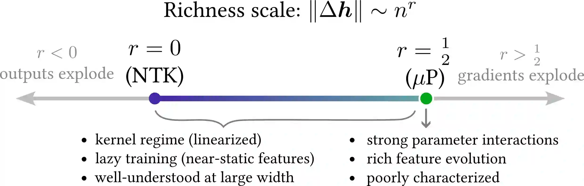 A central theme of the modern machine learning paradigm is that larger neural networks achieve better performance on a variety of metrics. Theoretical analyses of these overparameterized models have recently centered around studying very wide neural networks. In this tutorial, we provide a nonrigorous but illustrative derivation of the following fact: in order to train wide networks effectively, there is only one degree of freedom in choosing hyperparameters such as the learning rate and the size of the initial weights. This degree of freedom controls the richness of training behavior: at minimum, the wide network trains lazily like a kernel machine, and at maximum, it exhibits feature learning in the so-called $\mu$P regime. In this paper, we explain this richness scale, synthesize recent research results into a coherent whole, offer new perspectives and intuitions, and provide empirical evidence supporting our claims. In doing so, we hope to encourage further study of the richness scale, as it may be key to developing a scientific theory of feature learning in practical deep neural networks.