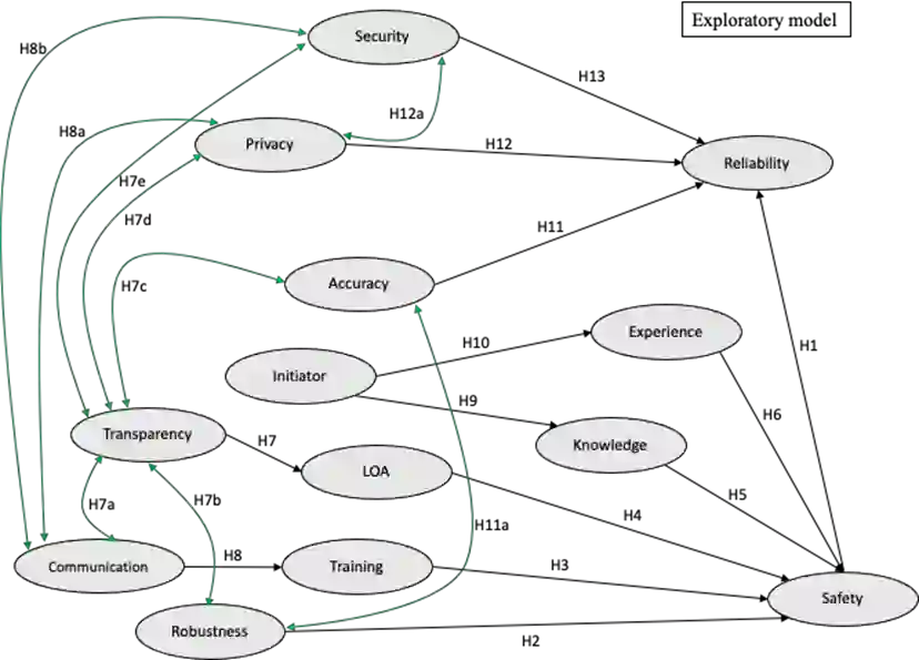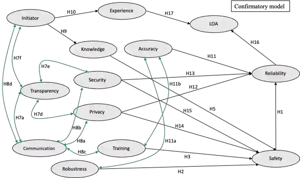 This study aimed to investigate the key technical and psychological factors that impact the architecture, engineering, and construction (AEC) professionals' trust in collaborative robots (cobots) powered by artificial intelligence (AI). The study employed a nationwide survey of 600 AEC industry practitioners to gather in-depth responses and valuable insights into the future opportunities for promoting the adoption, cultivation, and training of a skilled workforce to leverage this technology effectively. A Structural Equation Modeling (SEM) analysis revealed that safety and reliability are significant factors for the adoption of AI-powered cobots in construction. Fear of being replaced resulting from the use of cobots can have a substantial effect on the mental health of the affected workers. A lower error rate in jobs involving cobots, safety measurements, and security of data collected by cobots from jobsites significantly impact reliability, while the transparency of cobots' inner workings can benefit accuracy, robustness, security, privacy, and communication, and results in higher levels of automation, all of which demonstrated as contributors to trust. The study's findings provide critical insights into the perceptions and experiences of AEC professionals towards adoption of cobots in construction and help project teams determine the adoption approach that aligns with the company's goals workers' welfare.
