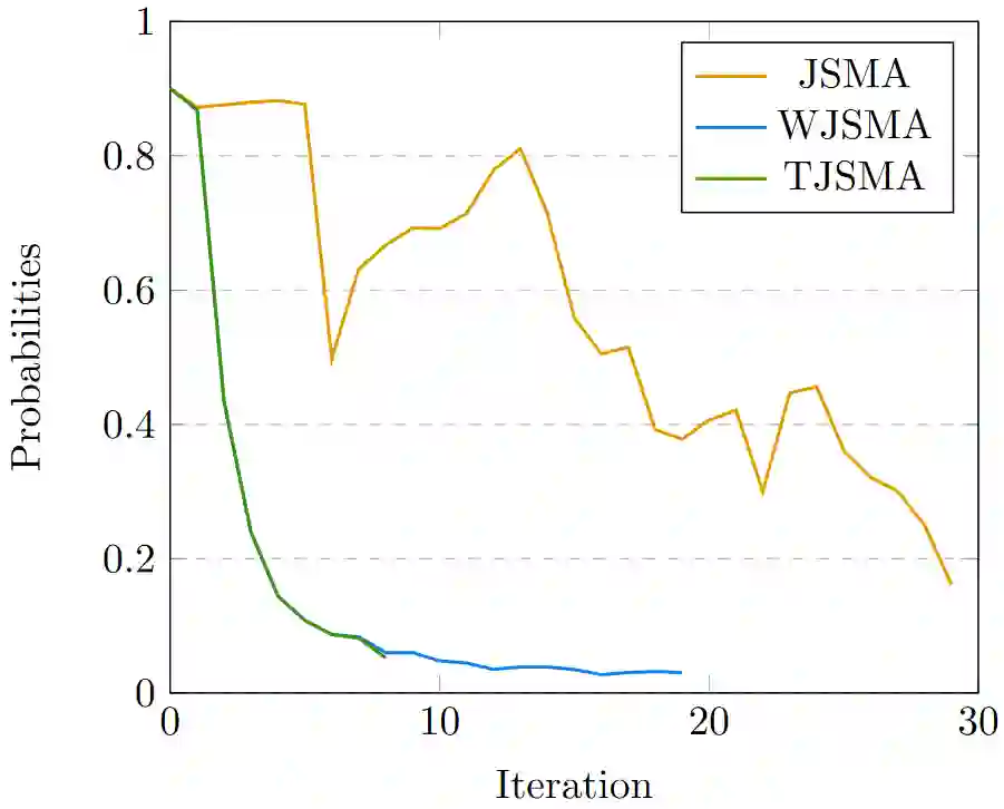 翻译:众所周知,神经网络分类(NNCs)很容易受到恶意对抗性干扰投入的干扰,包括修改一小部分输入特征(称为稀释或0.00美元袭击)的干扰。有效和快速的L_0美元袭击,如广泛使用的JacobianSaliency Saliency Mape攻击(JSMA)对愚弄NNCs(JSMA)来说是实用的,但也有助于提高其稳健性。在本文中,我们通过产出概率和NNNCSN输入特征对JSMA的突出地图进行处罚,从而获得更强大的攻击算法,更好地考虑到每项输入的特性。这导致我们引入了更完善的JSMA(WSMA)和Taylor JSMA(JSMA)的网络版本(JSMA),通过三套不同的数据集(MITS、CIFAR-10和GTSRRRRB)进行各种白箱和黑箱实验,表明这些地图比最初的有目标和非目标版本要快得多。 实验还表明,在某些情况中,我们攻击的SMA-RO_SMalalalalal(比SMA(C_CRB_CR)比SBR)比尚更具有激烈的SM_C_C_CRDRD_C_CRBR_C_CR_R)比尚更快。