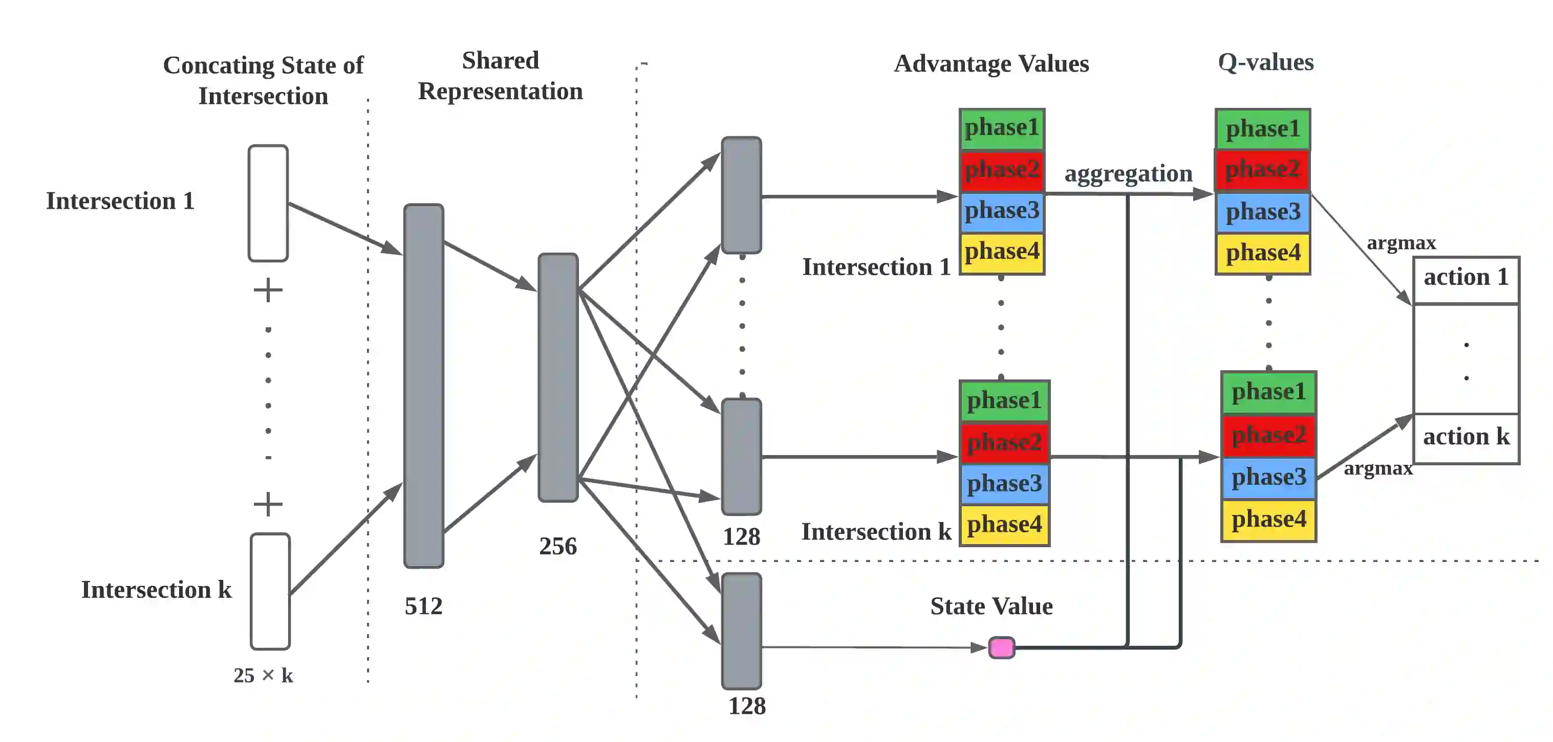 翻译:针对自适应的多智能体强化学习(MARL)交通信号控制是当前非常热门的课题。现有的一些新颖方法中,一个控制单个交叉口的智能体应用于协作多个交叉口。然而,MARL 的非静态特性仍限制着上述方法的性能,尤其是在交通网络不断扩大的情况下。一种可行妥协策略是将每个智能体分配到一组交叉口区域中以减少智能体的数量。该策略存在两个挑战,一是如何将交通网络划分为小区域,二是如何搜索区域交叉口的最佳联合行动。本文提出一个名为 RegionLight 的新型培训框架,在其中,我们的区域划分规则基于交叉口之间的邻接关系,并利用扩展分支对决 Q-Network(BDQ)来将其转化为动态分支对决 Q-Network(DBDQ)以限制联合动作空间大小的增长并减轻引入边界之外的虚假交叉口所带来的偏差。我们在真实数据集和合成数据集上的实验表明,我们的框架在其他新型框架中表现最佳,而我们的区域划分规则具有较好的鲁棒性。