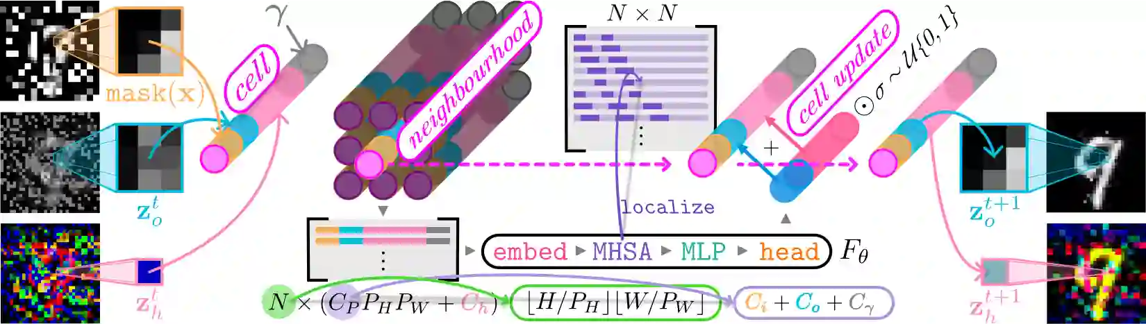 翻译:细胞自动数据( CA) 最近的扩展包含了现代深层学习的关键理念, 大大扩展了它们的能力并催化了神经细胞自动分析技术( NCA) 。 在基于变压器的架构的启发下, 我们的工作展示了一个新的类别, 即以空间本地化$\ unicode{x2014}$yt, 全球有组织$\unicode{x2014}$自备计划构成的NCA 。 我们引入了一个名为 $\ textit{ Vision 变换机自动数据组$( VICTA) 的例子。 我们展示了六个基准数据集自动解密的定量和定性结果, 将 VICA 与 U-Net 基数比较, U-Net CA 基线(UNetCA) 和 Vivision Tranger (VITA) 计划。 当将配置的跨结构与相似的参数复杂度进行比较时, VICT 结构在所有基准和几乎每个评价指标中都产生优优异性业绩。 我们展示了VTCA 的各种建筑结构配置配置配置配置配置配置,,, 最终分析了 VICABA 的图像分析, 和我们所 的深度分析。