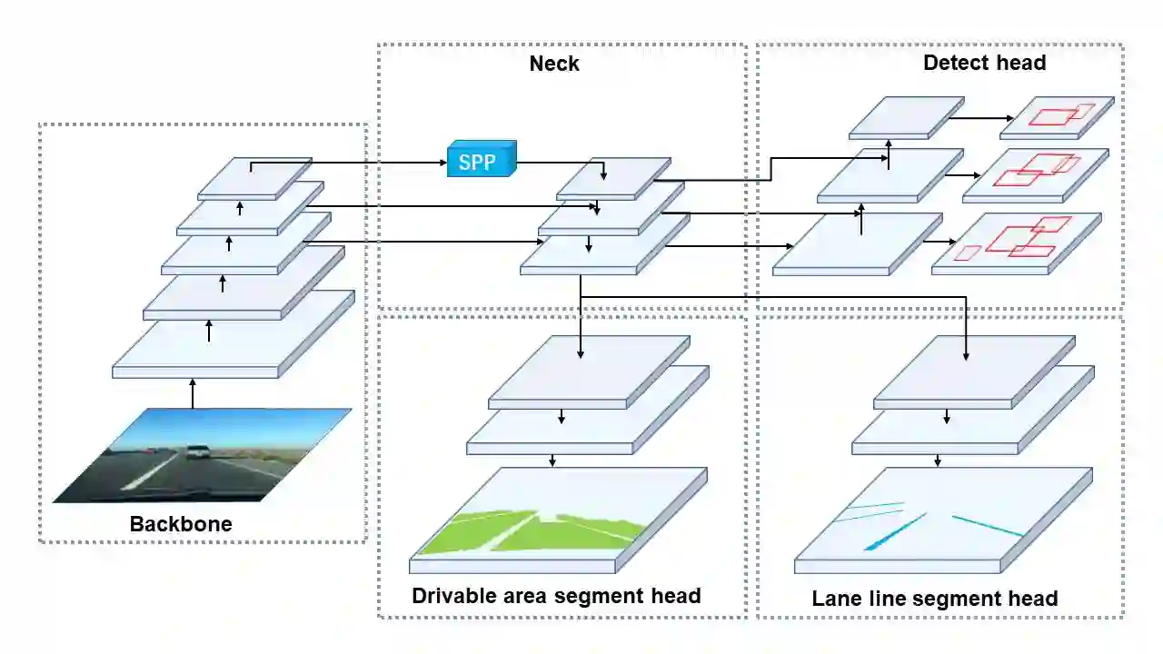 翻译:光学驾驶感知系统是自主驾驶的一个基本部分。高精度和实时感知系统可以帮助车辆在驾驶时做出合理的决定。我们同时提供一个全光驾驶感知网络(YOLOP),以进行交通物体探测、可驾驶区段分解和车道探测。它由1个特征提取编码器和3个处理具体任务的解码器组成。我们的模型在具有挑战性的BDD100K数据集方面表现极好,在所有三项任务中都实现了最先进的精确和速度。此外,我们还核实了我们通过模拟研究进行联合培训的多任务学习模式的有效性。据我们所知,这是首次在安装在杰特森TX2(23 FPS)嵌入装置上实时处理这三项视觉感知任务并保持极准确性的工作。为了便利进一步的研究,源码和预先训练模型将在https://github.com/hustvl/YOLOP发布。