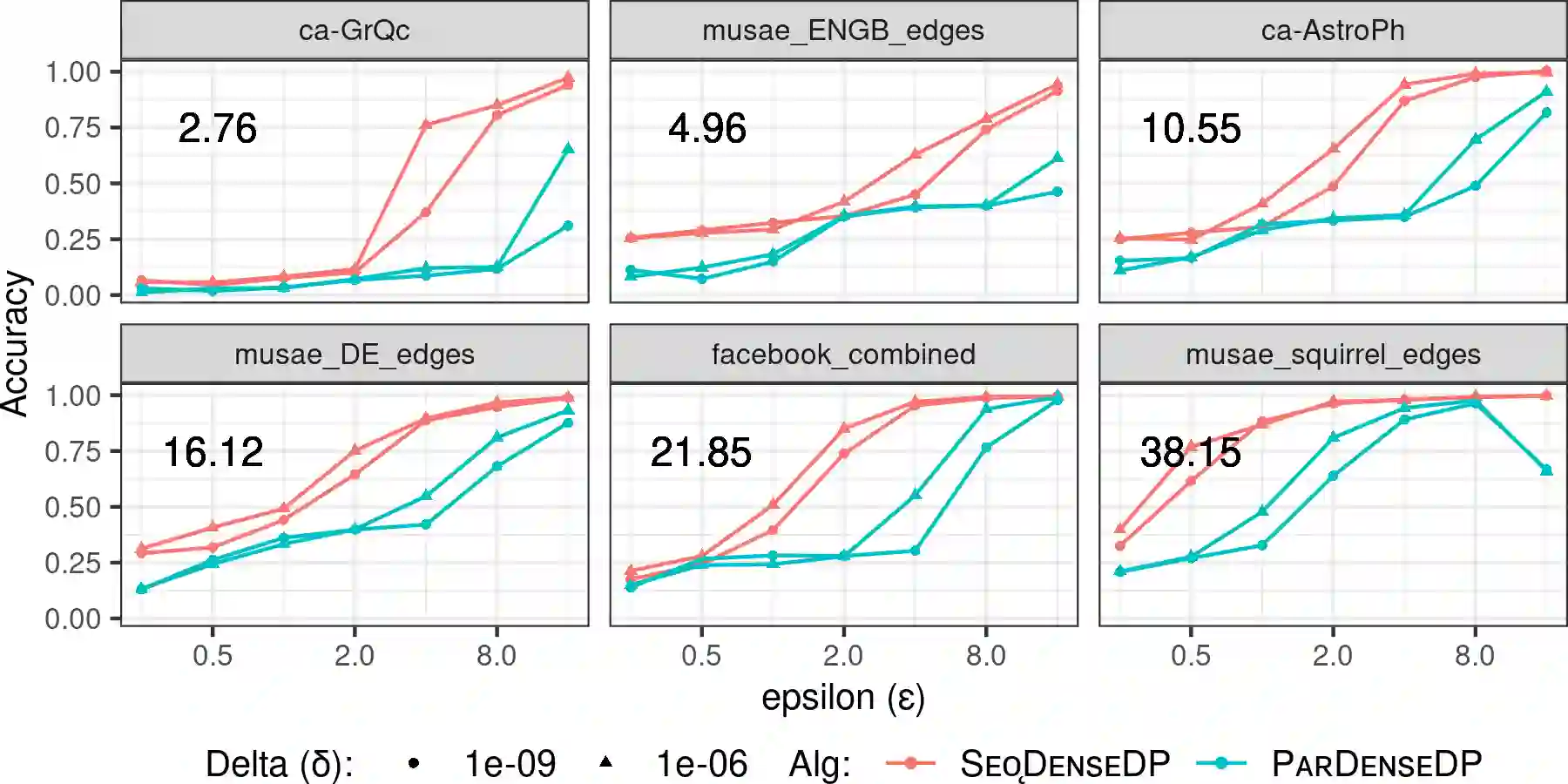 翻译:Densest Subgraph 探测是一个基本的图形采矿问题, 有很多应用。 在大规模网络中找到最稠密的子谱的高效算法方面已经做了大量工作。 但是, 在许多领域, 网络是私有的, 返回一个最稠密的子谱可以揭示网络的信息。 不同的隐私是处理这些设置的强大框架。 我们研究边缘隐私模型中最稠密的基底图问题, 即图的边缘是私有的。 我们给出了这个问题的第一个相继和平行的私人算法。 我们展示了我们的算法有一个附加近似保证。 我们评估了大量真实世界网络的算法, 当网络密度高时, 我们观察了良好的隐私- 准确交易 。