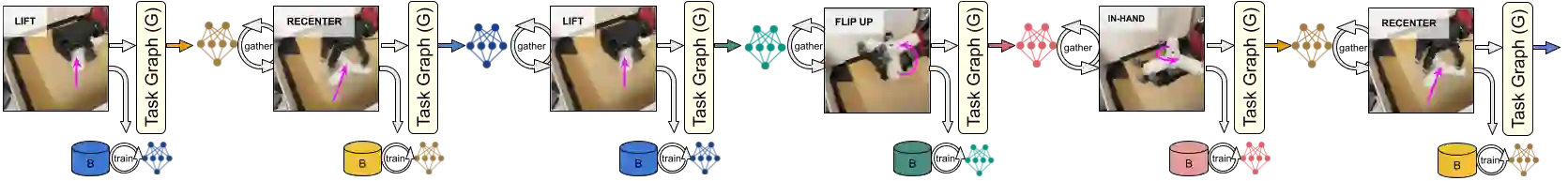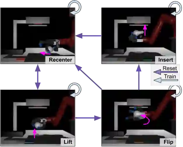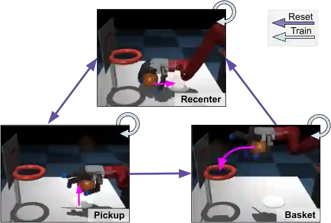 翻译:原则上,强化学习(RL)算法可以通过从通过试验和错误收集的真实世界的大量数据中学习,获得复杂的机器人技能。然而,大多数RL算法都使用精心设计的设置来收集数据,需要人的监督和干预来提供后遗症。这在挑战机器人的问题中特别明显,例如dexterous 操纵。为了使数据收集能够缩放,这些应用需要重新设置的算法,这种算法能够自主地学习,而没有明确的仪器或人类干预。这个领域的大多数先前工作处理的是单任务学习。然而,我们也许也想要能够进行大量技能重组的机器人。首先,这似乎只会使问题变得更为棘手。然而,我们在这项工作中的主要观察是,一个选择得当的多任务设置的多任务设置实际上减轻了重置的学习挑战,而不需要什么额外的机械。事实上,解决多任务处理的任何重置的问题可以直接解决任何重置的问题,因为不同的任务组合可以用来完成其他任务的重置。通过学习多种任务,我们可以有效地学习多任务来重新学习,这样可以有效地学习多任务,从而重新学习更多的重修。