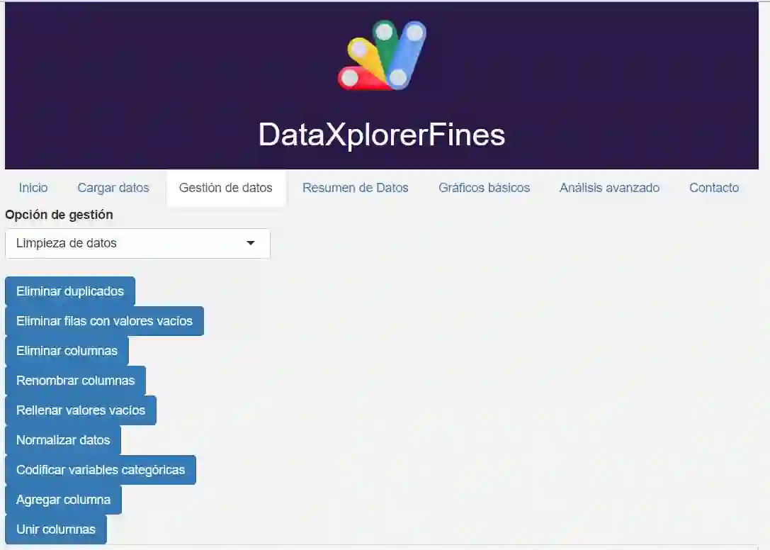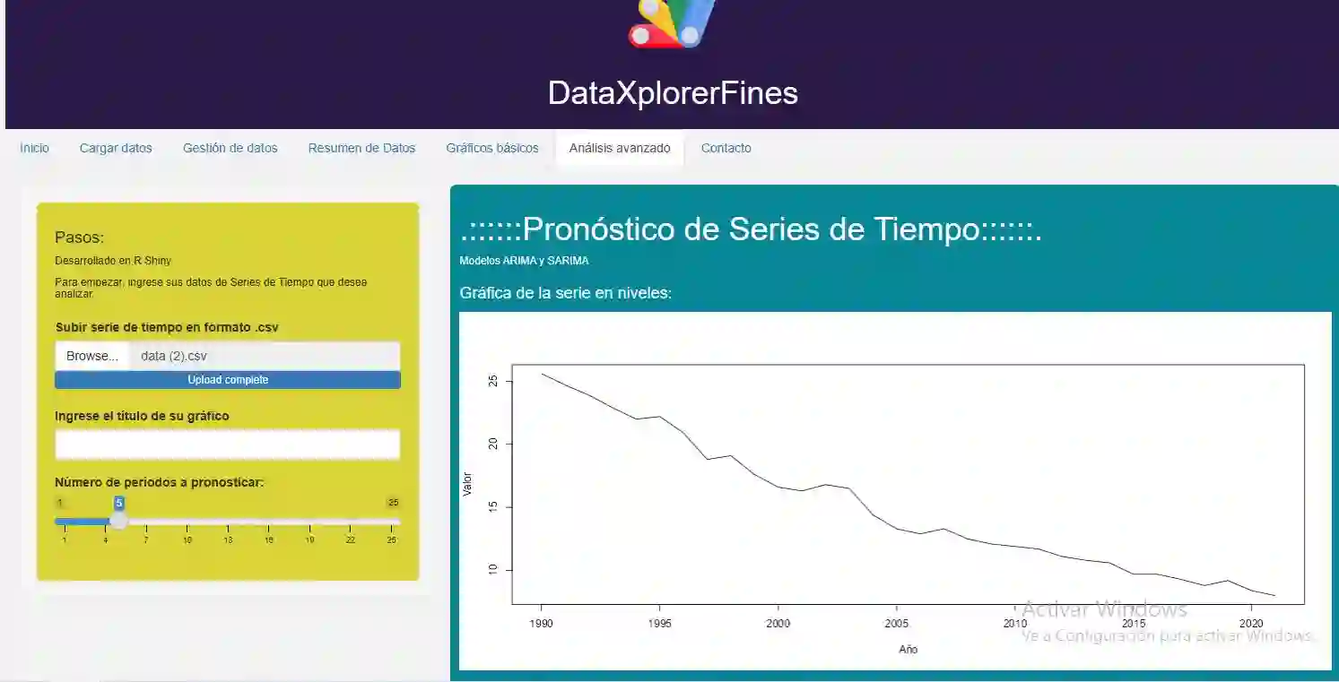 This article presents DataXploreFines, an innovative Shiny application that revolutionizes data exploration, analysis, and visualization. The application offers functionalities for data loading, management, summarization, basic graphs, advanced analysis, and contact. Users can upload their datasets in popular formats like CSV or Excel, explore the data structure, perform manipulations, and obtain statistical summaries. DataXploreFines provides a wide range of interactive visualizations, including histograms, scatter plots, bar charts, and line graphs, enabling users to identify patterns and trends. Additionally, the application offers statistical tools such as time series analysis using ARIMA and SARIMA models, forecasting, and Ljung-Box statistic. Its user-friendly interface empowers individuals from various domains, including beginners in statistics, to make informed decisions.