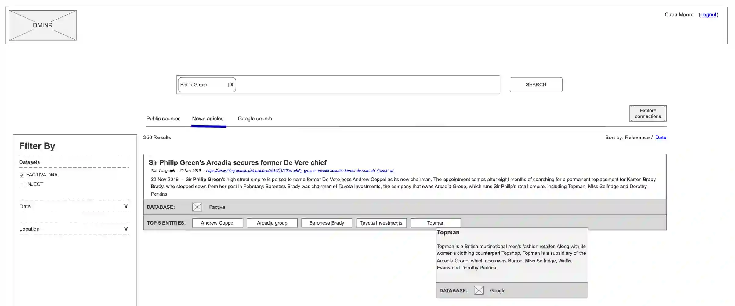 Journalists are key information workers who have specific requirements from information systems to support the verification and exploration of information. We overview the DMINR tool that has been designed and developed to meet the needs of journalists through the examination of journalists information behaviour in a newsroom. We outline our co-design process as well as the design, implementation and deployment of the tool. We report a usability test on the tool and conclude with details of how to develop the tool further