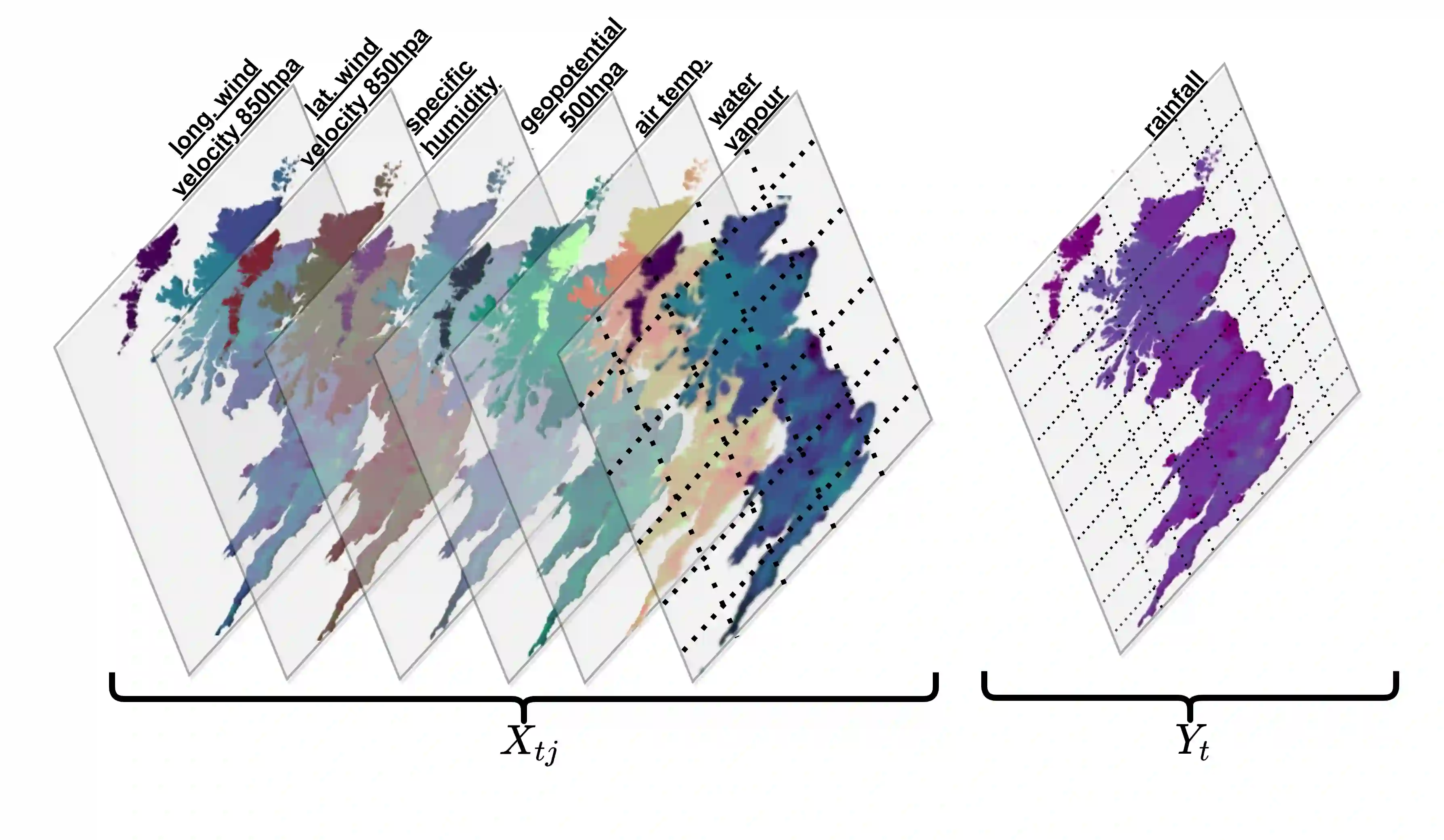 翻译:气候模型(CM)用于评估气候变化对洪水和强烈降水事件风险的影响;然而,这些数字模拟器难以准确地代表降水事件,主要原因是在模拟大气中多尺度动态时空间分辨率有限;为了改进高分辨率降水的预测,我们采用深度学习(DL)方法,利用模型领域(天气变量)的内存模拟(比当地降水更可预测的气候变量)的投入来改进高分辨率降水量的预测;为此,我们介绍了一个编码器脱coder-NET(临时经常性U-Net)模型,这是一种编码器脱coder-Decoder模型,其特点是连接的连续连续连续周期层之间的2D交叉关注机制,以有效模拟多尺度阵列时空天气过程的空间分辨率分辨率有限;我们使用一个有条件的连续损失函数来捕捉零偏差的降雨量事件模式(DL)。实验表明,我们的模型比短期降水量预测中流行的DL模型一直低RME和MAE分,并改进了对最新动态动态气象模型的降水量预测。此外,我们通过评估高质量模型的绩效,在各种数据测试和模型下充分展示了我们不同阶段的数据。