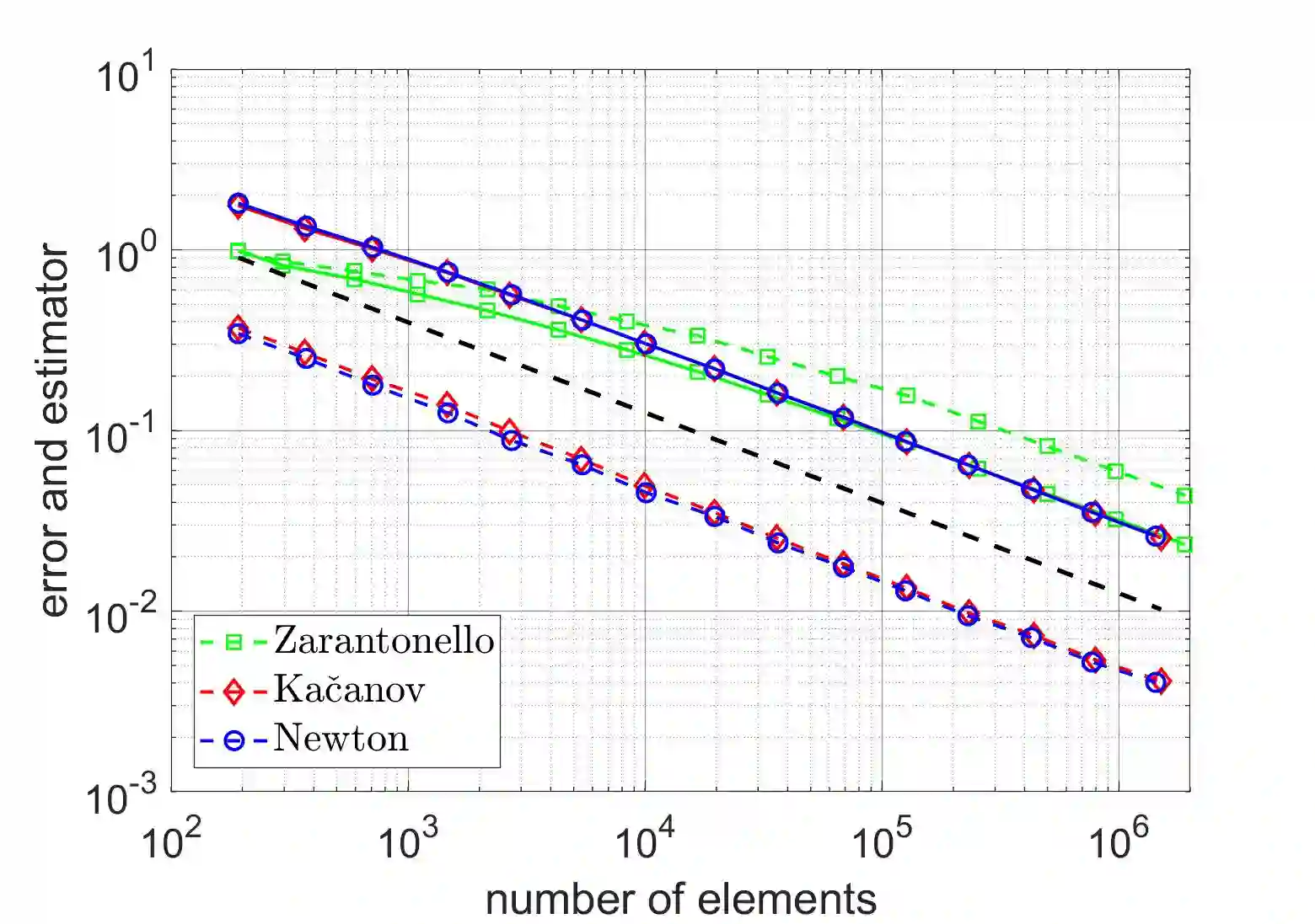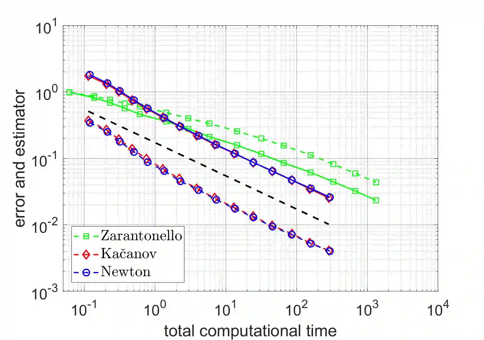 翻译:我们重新审视了希尔伯特空间非线性方程式迭代解决方案的统一方法。我们的主要看法是,[海德和维赫勒, Math.comp. 89 (2020), Calcolo 57 (2020)] 的一般方法在(抽象)强烈的单质问题中满足了一种能量收缩财产。而这种财产则是最近在[甘特纳等人,arXiv:2003.10785] 进行的趋同分析中的关键成分。我们特别推断,适应性迭代线性线性有限要素方法(AILFEMs)在自由度和总计算时间方面,与最佳代数率完全线性趋同。