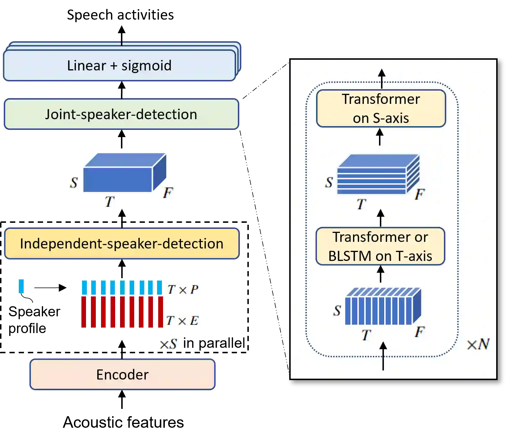 翻译:本文描述以使用变压器的目标扬声器活动检测(TS-VAD)为基础的扩音器diarization模型。 为了克服最初的TS-VAD模型无法处理任意数目的发言者的缺点, 我们还调查了使用有不同长度时间和音量的输入电压的模型结构。 将变压层应用到扬声器轴中, 使模型输出与提供给TS- VAD模型的扬声器概况的顺序不敏感。 从时间角度的相继层在这些发声器变异器层之间相互穿插, 以便能够捕捉到输入语音信号信号信号的时空和跨声器的相互关系。 我们还将基于以电算器-变电解器吸引器(ENDU-EDA) 的顶端至端神经二分解模型(DUA-DER) 和 ENDU-DA 的 EDERA 的 EDU-DU A Unal- Develop AS 和 EDU-DA 的 EDU-DA 的EDA 和 AS-DU 的 RDU-DUA 的 RDA 的扩展 RA 的EDU-DA 的扩展 和 的 EDU-DU-DA 10 和 的 R 10 RA 的 RDU 的 R 的 R 10 和 的 R 的 R 和 的 R 的 R 的 RDU-DU 10 的 R 的 RDU 的 RDU 的 R 的 RDU 的 RDUDU 的 RDU 和 的 R 的 RDUDFA 和 的 R 的 R 的 R 的 R 的 R 的 R 的 R 和 和 的 R 的 R 和 和 的 R 的 R 的 RDUDUDU 的 RDUDUDFA 的 R 的 RDU 和 和 的 R 的 R 的 R 的 R 的 R 和 的 R 的 R 的 R 和 和 的 R 的 R 的 R 的 R 和 和