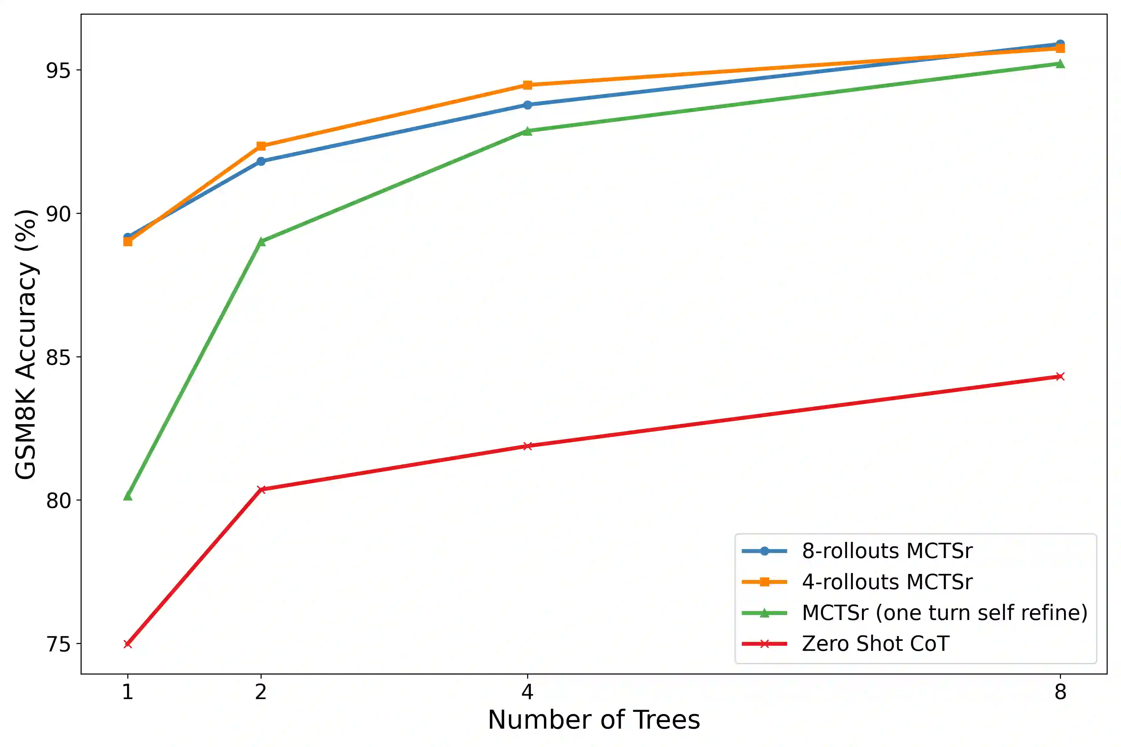 翻译:大语言模型(LLMs)在各种语言任务中展现出卓越能力,但解决复杂推理问题仍是重大挑战。现有方法如思维链(CoT)和思维树(ToT)通过分解问题或结构化提示来增强推理,但通常仅执行单次推理且难以修正错误路径,影响准确性。为突破此局限,我们提出名为思维森林(FoT)的新型推理框架,该框架整合多棵推理树以利用集体决策解决复杂逻辑问题。FoT采用稀疏激活策略选择最相关推理路径,提升效率与准确性。此外,我们引入动态自校正策略实现实时纠错,并结合共识引导决策策略以优化正确性与计算资源。实验结果表明,FoT框架结合这些策略能显著增强LLMs的推理能力,使其以更高精度和效率解决复杂任务。代码发布于 https://github.com/iamhankai/Forest-of-Thought。