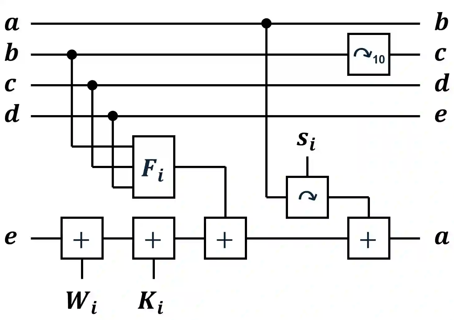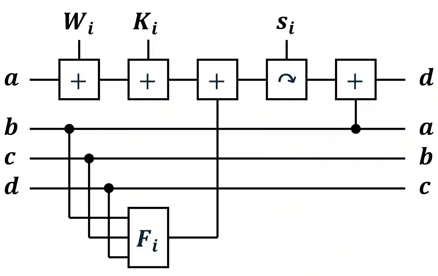 翻译:量子软件框架为软件工程师提供了工具,用于研究适用于实际问题的量子算法。我们用古典散列函数MD5、SHA-1、SHA-2和SHA-3作为量子神器,研究用Grover的Algorithm进行预视攻击的计算资源需求。我们改进了SHA-3 甲骨文,将Keccak区块调整所需的逻辑qubts数量减少40%。