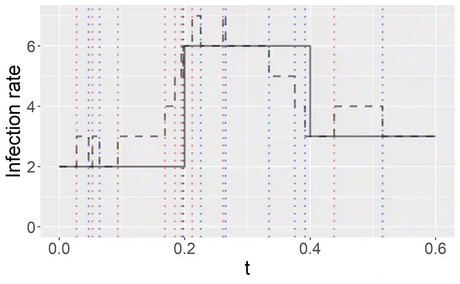 翻译:斯托氏流行病模型对疾病在人群中的传播提供了可解释的概率描述。然而,由于许多古典模型的可能性难以接受,因此,在仅部分观察到流行病过程只是部分被观察到时安装这些模型是一项臭名昭著的困难任务,因为许多古典模型可能难以吸引。为解决这个问题,本文章引入了一种新的数据强化MCMC算法,用于快速和精确的巴伊西亚测序,根据不连续观测到的感染发生率,对随机SIR模型进行快速和精确的贝叶色推论。在大都会-哈斯阶段,从一个与SIR非常相似的代孕过程联合提出了潜在数据的新事件次数,从中我们可以有效地产生与所观察到的数据相容的流行病。提议的DA-MC算法是快速的,由于潜在数据来自目标模型的忠实近似近,因此大部分数据可以随其反复更新,而不会令人望目惊心动地降低接受率。我们发现,该方法探索高度的潜伏空间和尺度,可以与数十万人一起爆发,我们展示2013年马可用作算法基础的链,以便有效地产生与所观察到的流行病的流行病。我们通过彻底的中东的试验来验证。