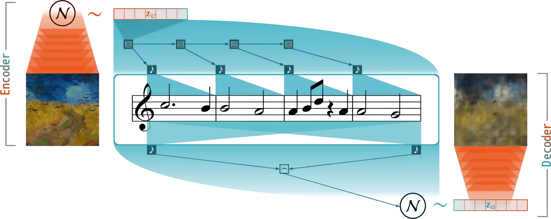 翻译:这项研究中引入的合成审美变异自动编码器(SynVAE)能够在没有配对数据集的情况下,在视觉和审计感知模式之间取得一致的制图。对MNIST和Behance艺术媒体数据集的定量评价表明,SynVAE能够在翻译过程中保留足够的信息内容,同时保持跨模式潜藏空间的一致性。在定性评价试验中,人类评价员还能够将音乐样品与产生这些样品的图像相匹配,其精密度高达73%。