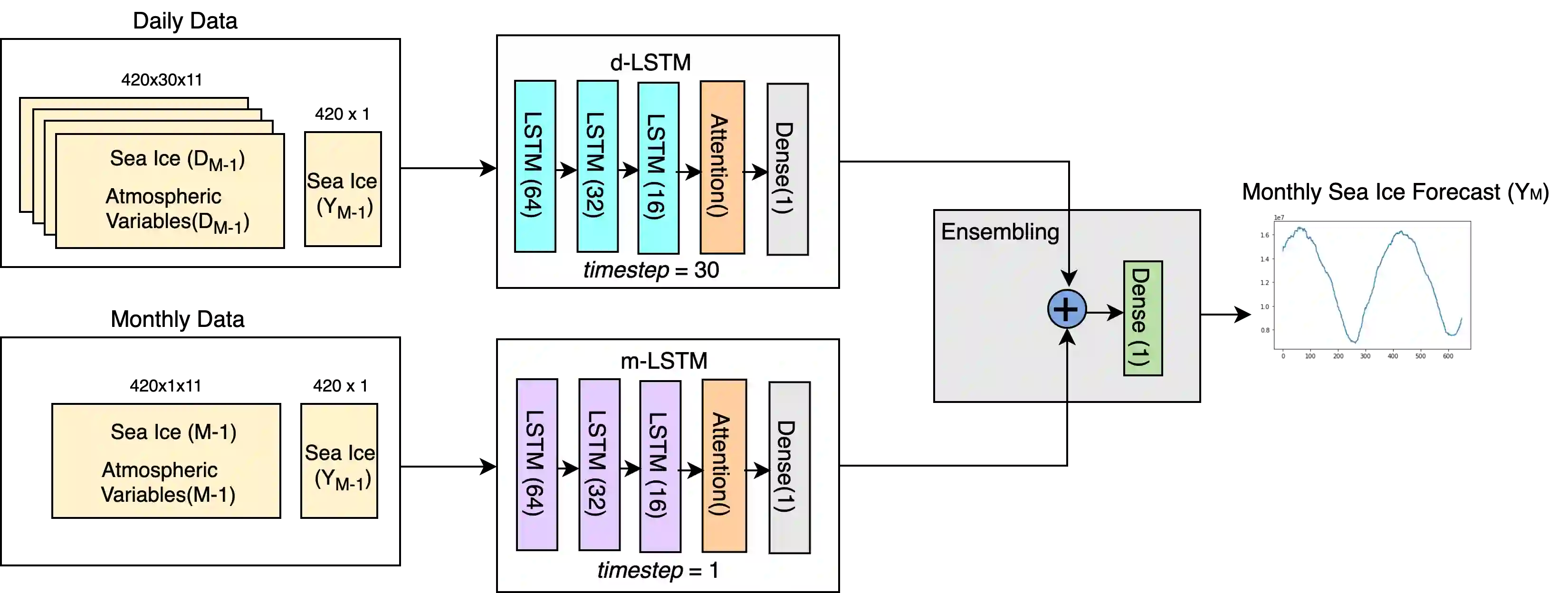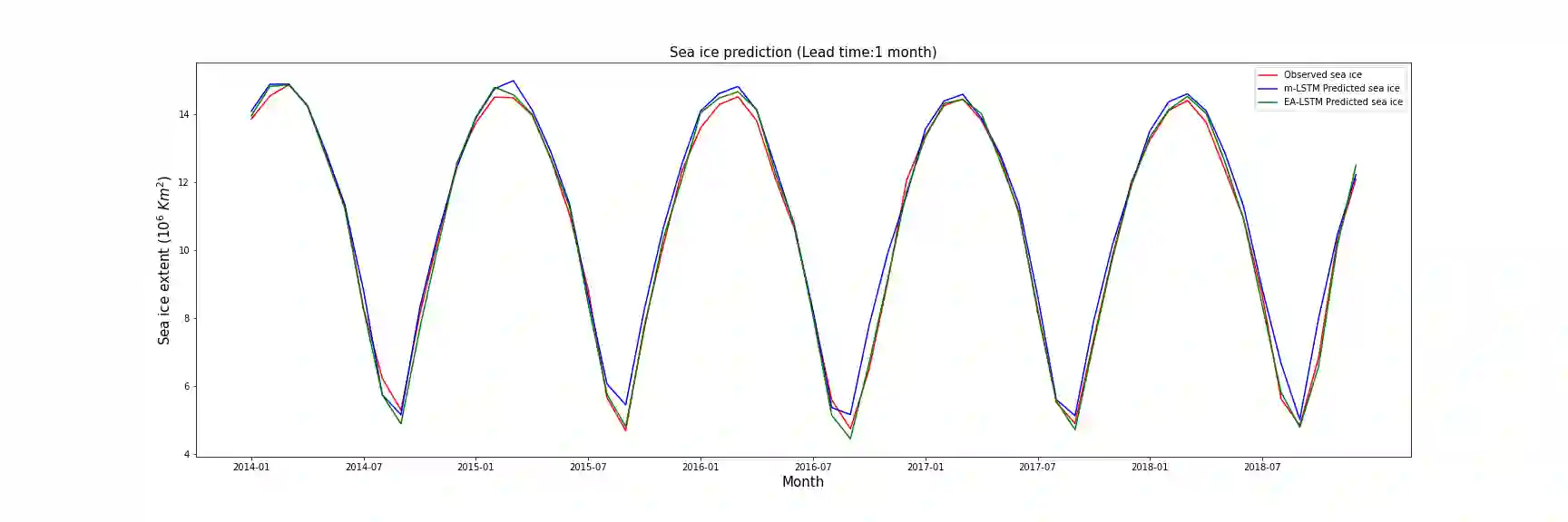 翻译:准确预测从亚季节到季节的北极海冰是一项重大的科学努力,其根本挑战在起作用。除了基于物理学的地球系统模型外,研究人员一直在应用多种统计和机器学习模型来进行海冰预报。看数据驱动海冰预报的潜力,我们建议采用基于关注的长期短期记忆(LSTM)共聚法来预测每月海冰的程度,直至未来1个月。我们利用从NSIDC检索到的海冰数据以及从ERA5再分析产品中采集的大气和海洋变量的每日和月度卫星数据,显示39年来我们的多时共振方法超越了几个基线和最近提议的深层学习模型。这将大大提高我们预测未来北极海冰变化的能力,这对预测运输路线、资源开发、海岸侵蚀、北极沿海社区的威胁和野生动物至关重要。