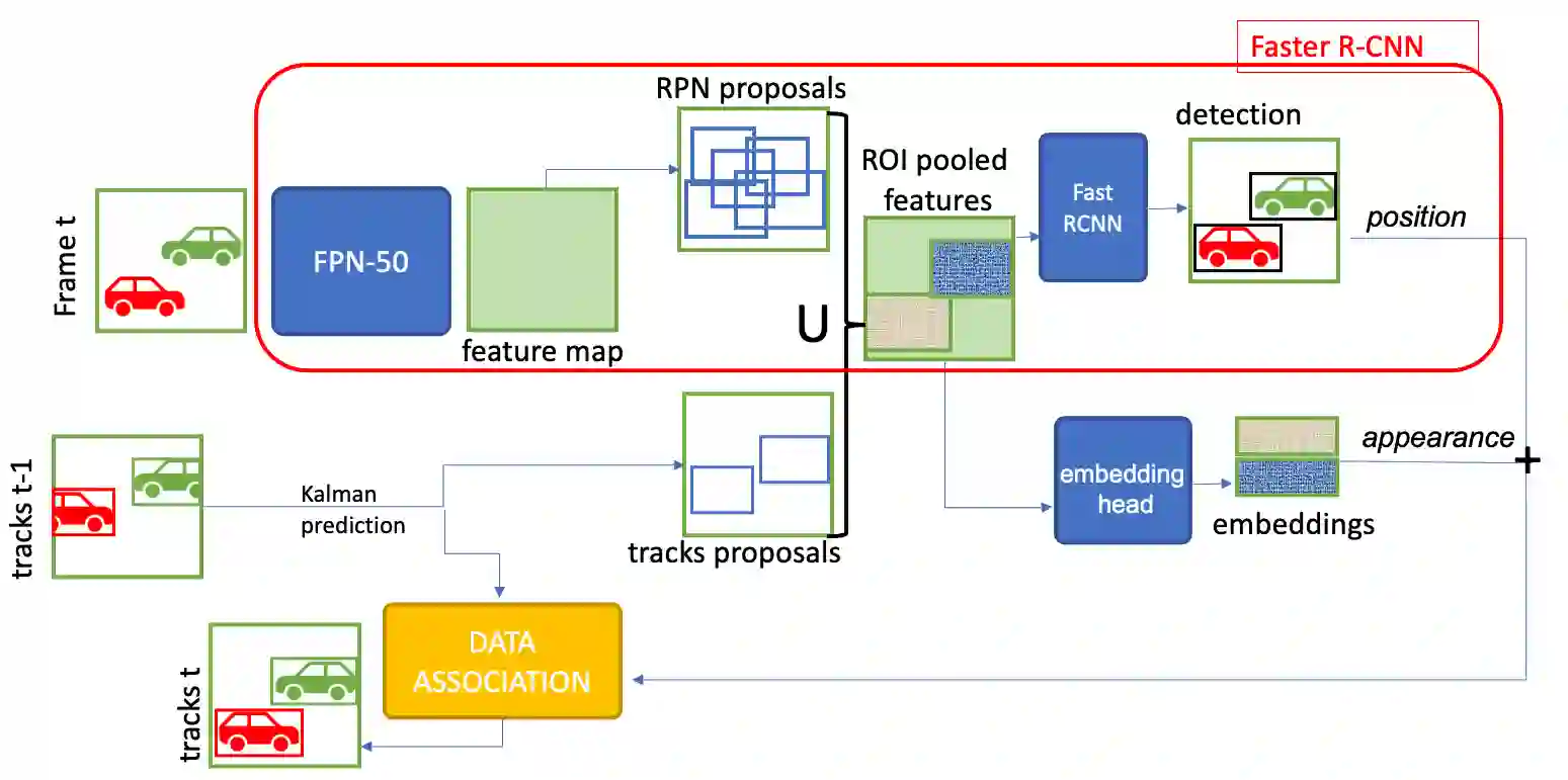 翻译:视频中的物体探测和跟踪是当前和未来视觉观察系统的基本和计算上要求很高的组成部分。为了缩小现有方法与现实世界应用的计算要求之间的效率差距,我们提议重新思考最成功的图像物体探测方法之一,即快速R-CNN,并将其推广到视频领域。具体地说,我们扩大探测框架以学习对数据关联和重新识别目的有益的实例级嵌入。我们侧重于探测和跟踪的计算方面,我们提出的方法达到了相关应用所需的极高的计算效率,同时仍然设法与我们在标准物体跟踪基准实验中显示的最新和最先进的方法竞争。