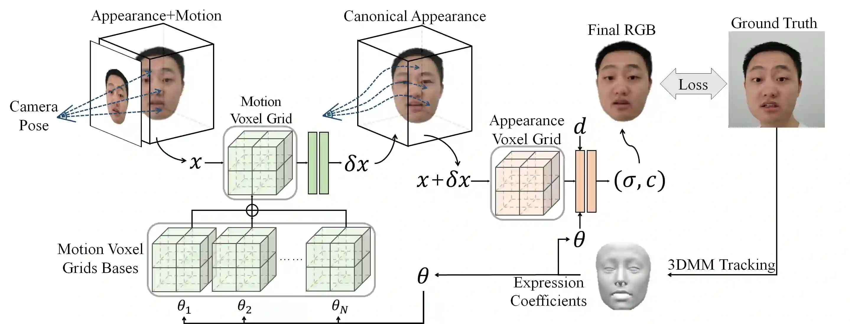 翻译:面部重新反应使用NERF后,最近的方法可以从一个单视视频中恢复光现实的 3D 头电动。 不幸的是,基于 NERF 方法的培训过程非常耗时,因为 NERF 方法中使用的 MLP 效率低,需要过多的迭代才能聚合。为了解决这个问题,我们建议使用运动-软件神经氧化物的神经氧化物模型,即快速的 3D 头电动重建方法ManVatar。 ManVatar 是最先从脑血管外观中分离出光学表达动作的调和,并用神经毒气模拟表达动作。 特别是, 运动觉神经氧化物是由多四维高压的加权配制生成的。 4D 电磁共和一对一对一对应3DMM 表达基, 和3DMM 表达系数的重量相同。 从我们的新表述中得益益, 提议的ManVatar 可以在仅仅5分钟内恢复光现实头电动头( 使用纯的面膜合成法) 。 这比状态要快得多, 。