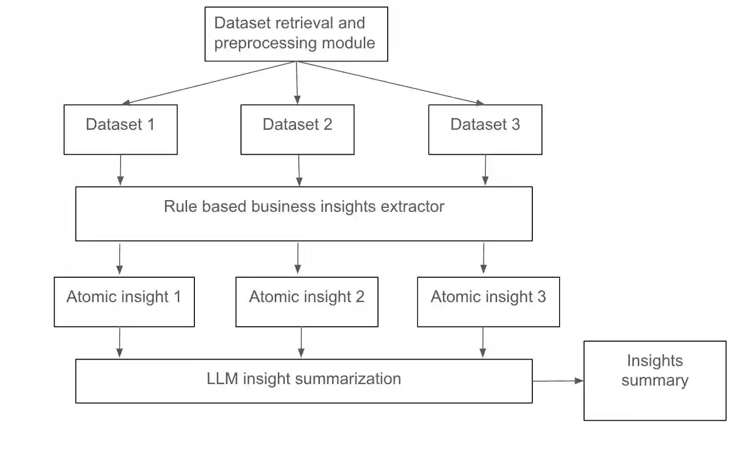 In the field of business data analysis, the ability to extract actionable insights from vast and varied datasets is essential for informed decision-making and maintaining a competitive edge. Traditional rule-based systems, while reliable, often fall short when faced with the complexity and dynamism of modern business data. Conversely, Artificial Intelligence (AI) models, particularly Large Language Models (LLMs), offer significant potential in pattern recognition and predictive analytics but can lack the precision necessary for specific business applications. This paper explores the efficacy of hybrid approaches that integrate the robustness of rule-based systems with the adaptive power of LLMs in generating actionable business insights.