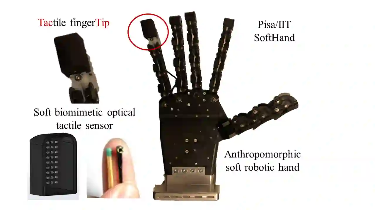 翻译:在这项工作中,我们报告对Pisa/IIT SoftHand(一种围绕适应性协同增效原则设计的人类形态软机器人手)的综合感官控制,即BRL触摸指点(TacTip),一种基于人类触感的软生物模拟光学光学触摸传感器。我们的重点是如何利用触觉感感来控制一个具有某种感知力的人体形态手,其作用力以尊重手的机械功能的整合为基础。我们考虑:(一) 闭路触控,以便在一个未知的被搁置物体上建立光接触,其依据是未变形触动图像的结构相似性;(二) 利用为控制TacTip家族的其他传感器而开发的演动神经网络方法,控制一个被搁置物体的边缘特征的估计面部。总体而言,这为将软机器人手与人似触碰的内嵌入、操纵、人类机器人相互作用和假肢的影响打下奠定了基础。 补充视频: https://youtu/robends。