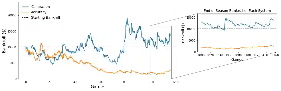 Sports betting's recent federal legalisation in the USA coincides with the golden age of machine learning. If bettors can leverage data to reliably predict the probability of an outcome, they can recognise when the bookmaker's odds are in their favour. As sports betting is a multi-billion dollar industry in the USA alone, identifying such opportunities could be extremely lucrative. Many researchers have applied machine learning to the sports outcome prediction problem, generally using accuracy to evaluate the performance of predictive models. We hypothesise that for the sports betting problem, model calibration is more important than accuracy. To test this hypothesis, we train models on NBA data over several seasons and run betting experiments on a single season, using published odds. We show that using calibration, rather than accuracy, as the basis for model selection leads to greater returns, on average (return on investment of $+34.69\%$ versus $-35.17\%$) and in the best case ($+36.93\%$ versus $+5.56\%$). These findings suggest that for sports betting (or any probabilistic decision-making problem), calibration is a more important metric than accuracy. Sports bettors who wish to increase profits should therefore select their predictive model based on calibration, rather than accuracy.