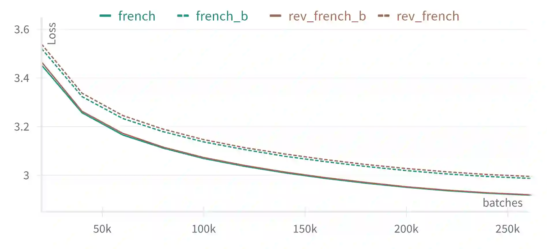 We study the probabilistic modeling performed by Autoregressive Large Language Models (LLMs) through the angle of time directionality, addressing a question first raised in (Shannon, 1951). For large enough models, we empirically find a time asymmetry in their ability to learn natural language: a difference in the average log-perplexity when trying to predict the next token versus when trying to predict the previous one. This difference is at the same time subtle and very consistent across various modalities (language, model size, training time, ...). Theoretically, this is surprising: from an information-theoretic point of view, there should be no such difference. We provide a theoretical framework to explain how such an asymmetry can appear from sparsity and computational complexity considerations, and outline a number of perspectives opened by our results.